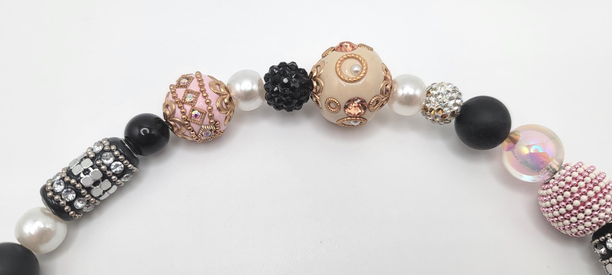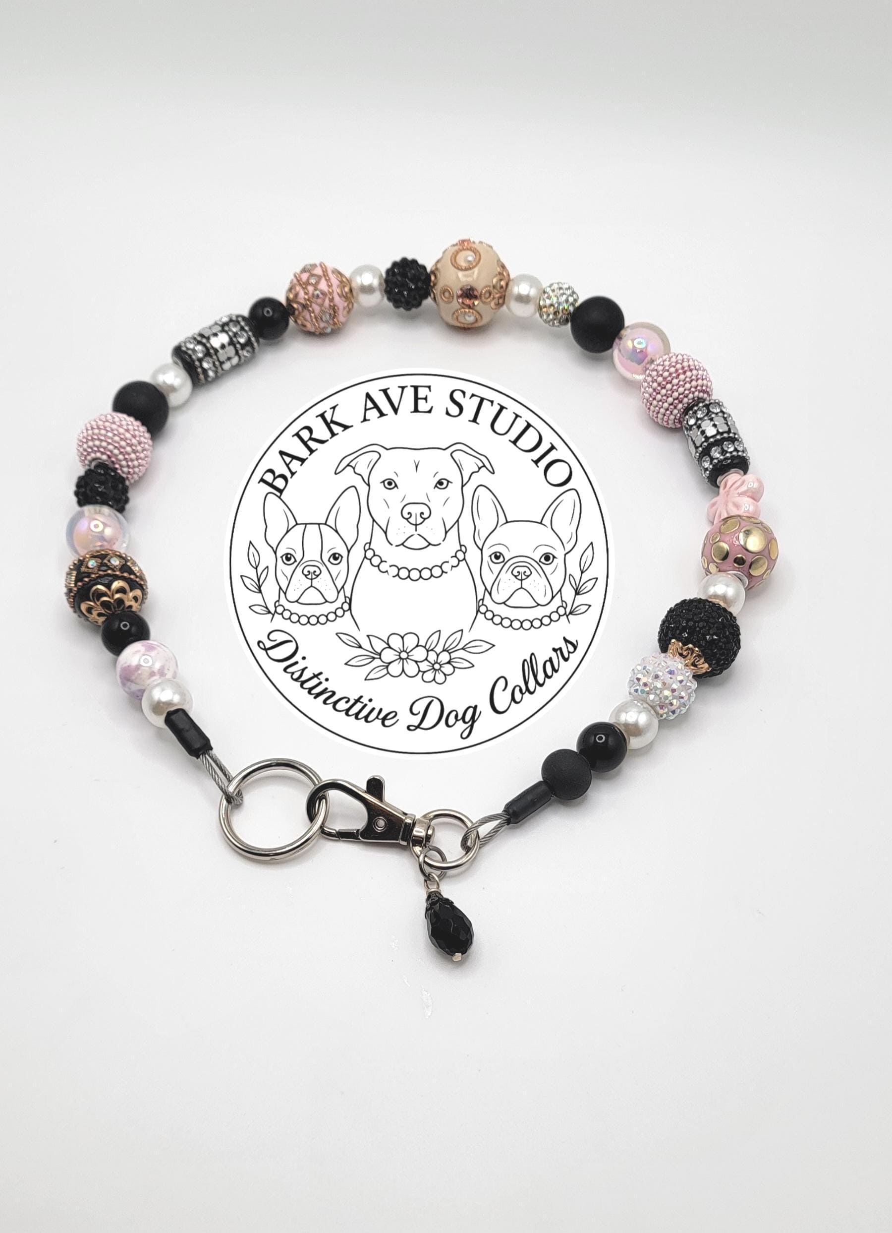 Treat your pup to pure elegance with our handcrafted luxury beaded dog collar from Bark Ave Studio. Featuring a stunning mix of black, blush, and pearl-toned beads with rhinestone accents and adorable charm detail, this collar is more than just an accessory – it’s wearable art for your best friend.