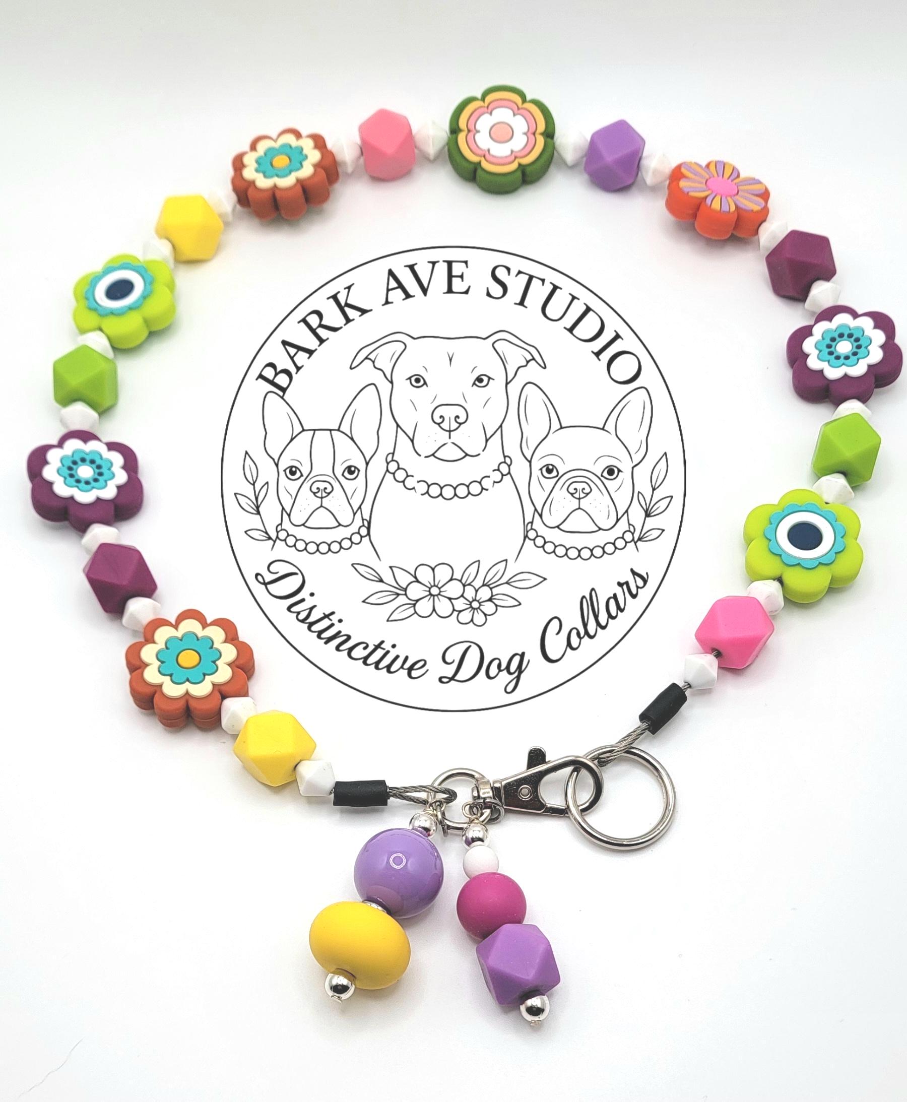 Add a pop of playful charm to your pup’s look with this vibrant beaded flower dog collar from Bark Ave Studio! Bursting with color, this collar features a cheerful mix of flower-shaped beads, geometric accents, and bold dangles—perfect for dogs with big personalities. Whether you’re heading to the park, a paw-ty, or just out for a stylish stroll, this collar makes a fun fashion statement.
