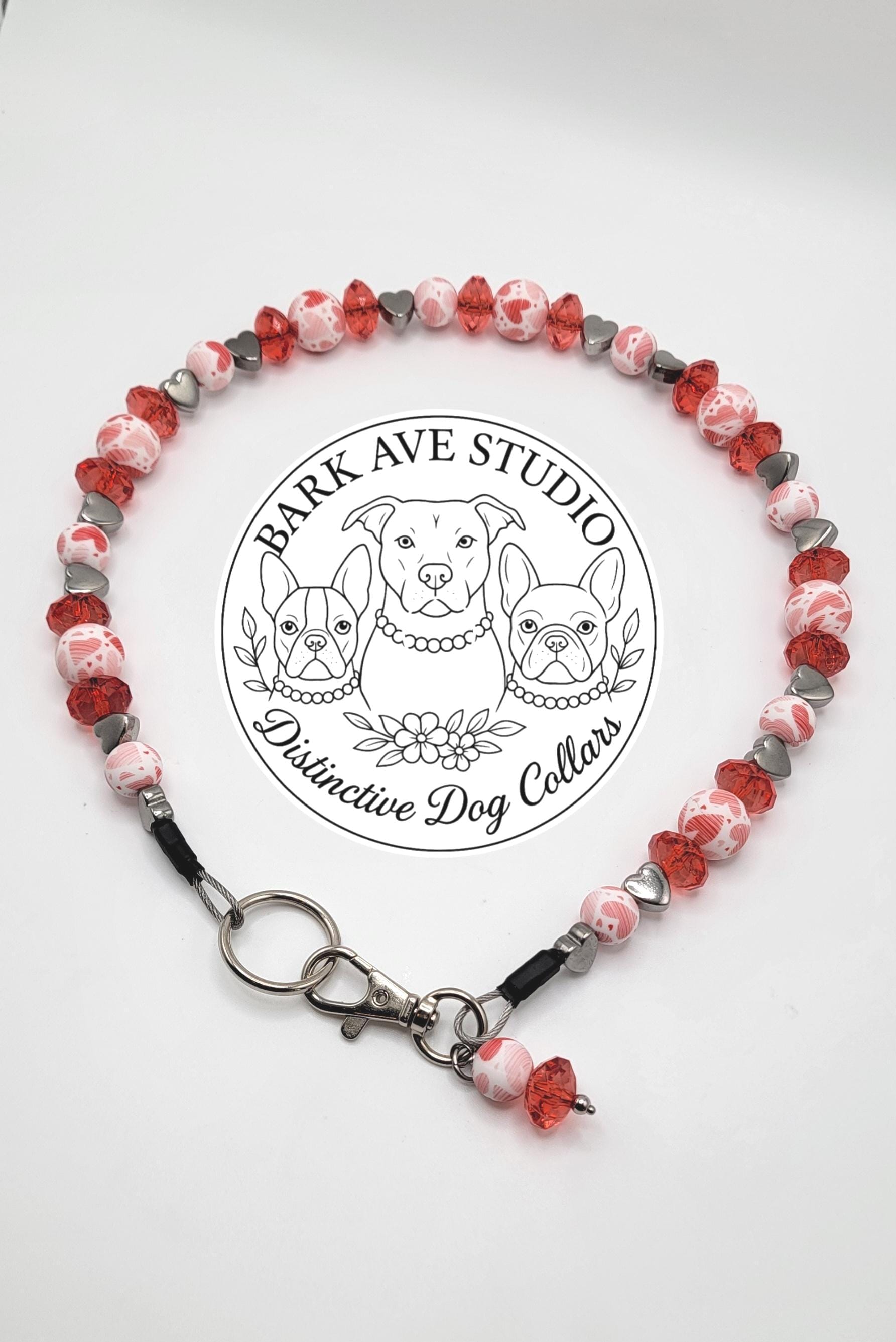 Show your pup some extra love with this Valentine Hearts Dog Collar from Bark Ave Studio. Handmade with care, this collar features a striking combo of transparent red faceted beads, stainless steel heart beads, and detailed silicone beads covered in hearts — creating a vibrant and festive piece that’s as sweet as your four-legged valentine.