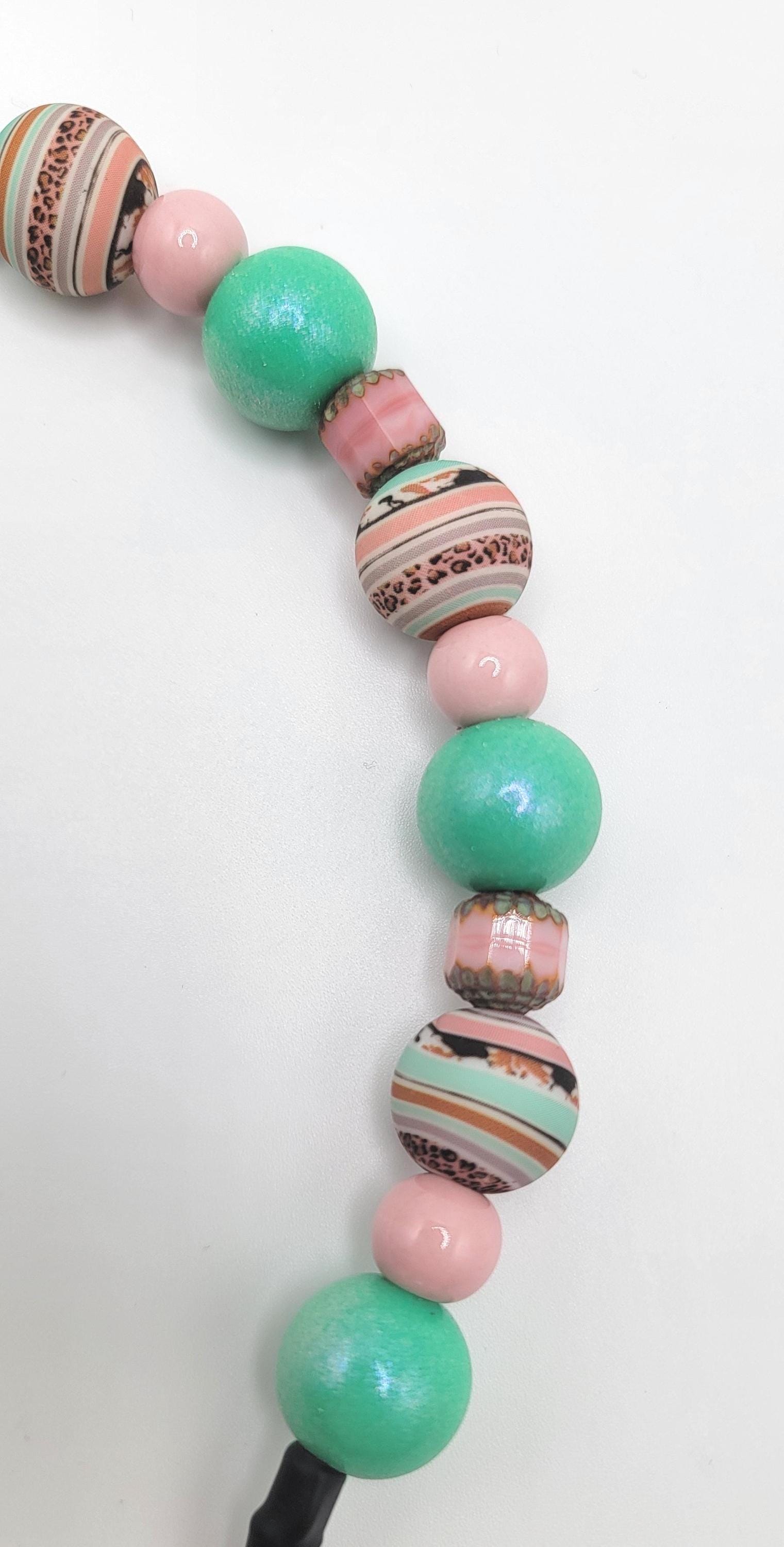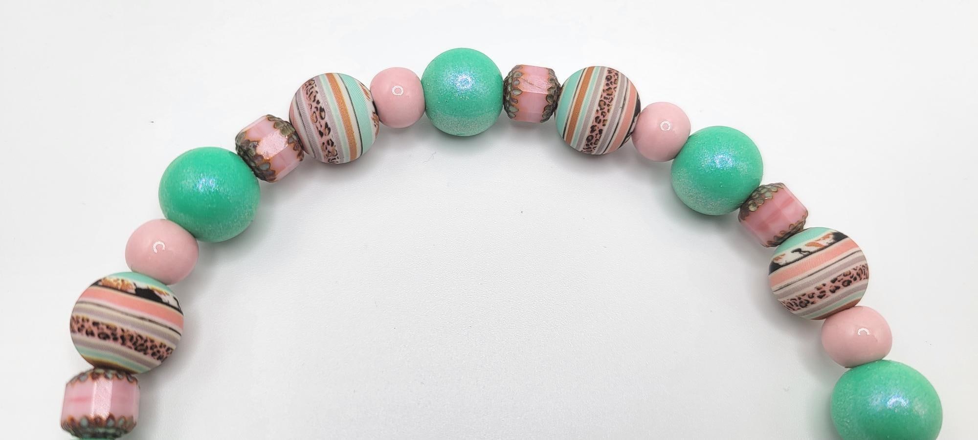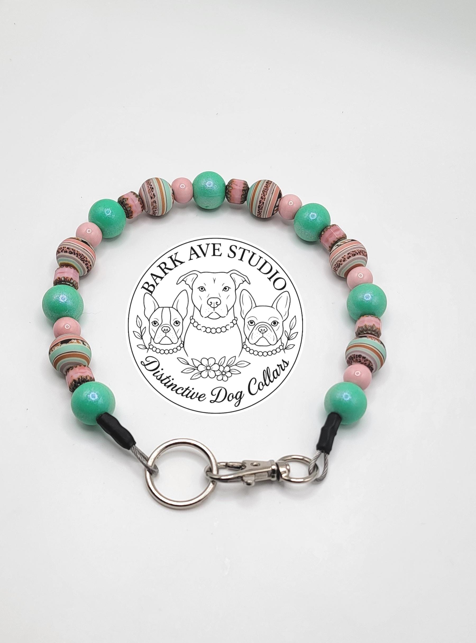 Meet the Mint Mojito – a playful twist of cool mint greens and retro raspberry pinks, handcrafted into a show-stopping beaded dog collar. Each bead, from shimmering stripes to matte textures, is hand-selected for vintage flair and bold personality.