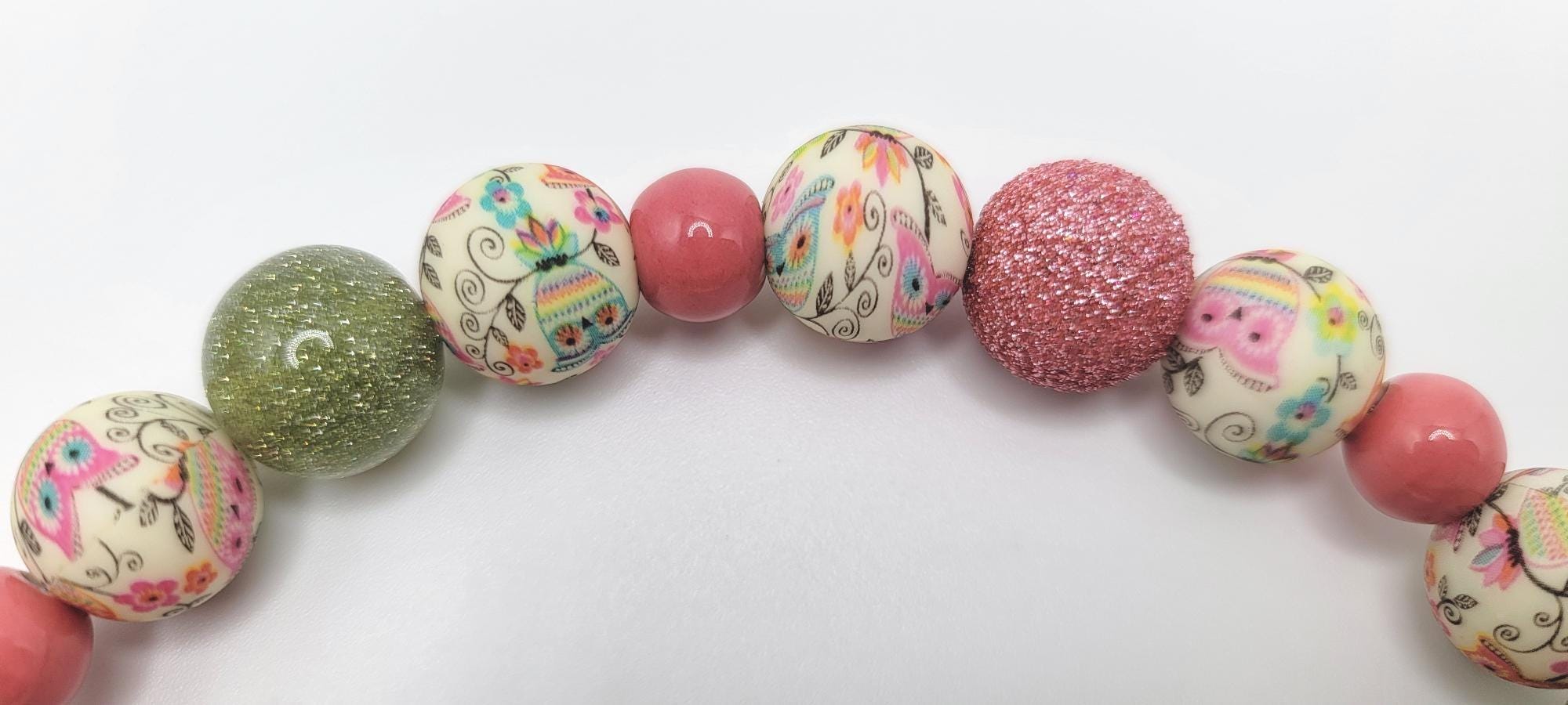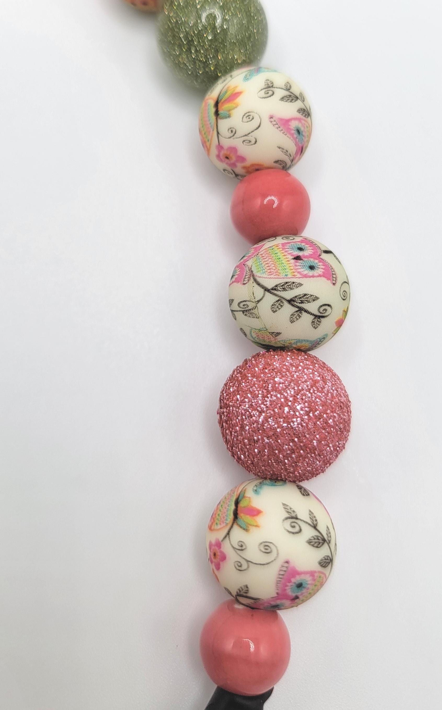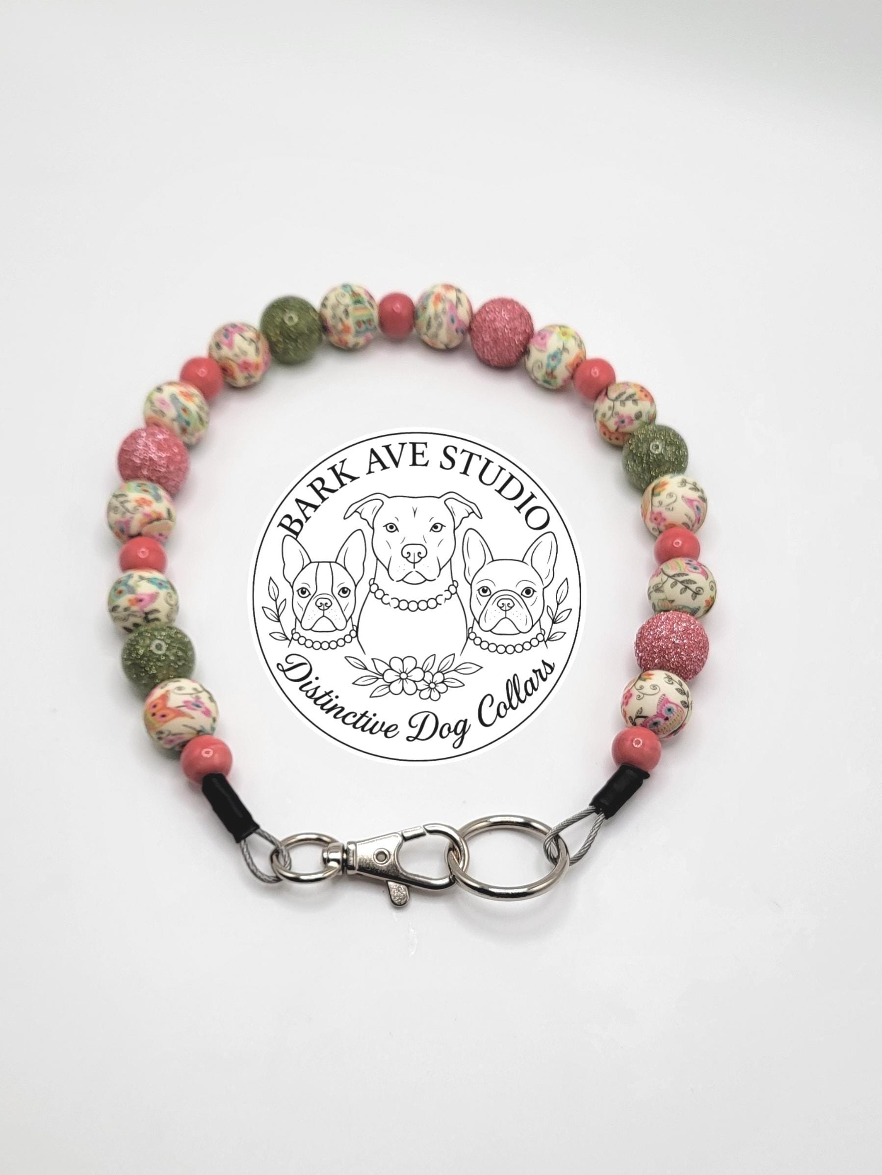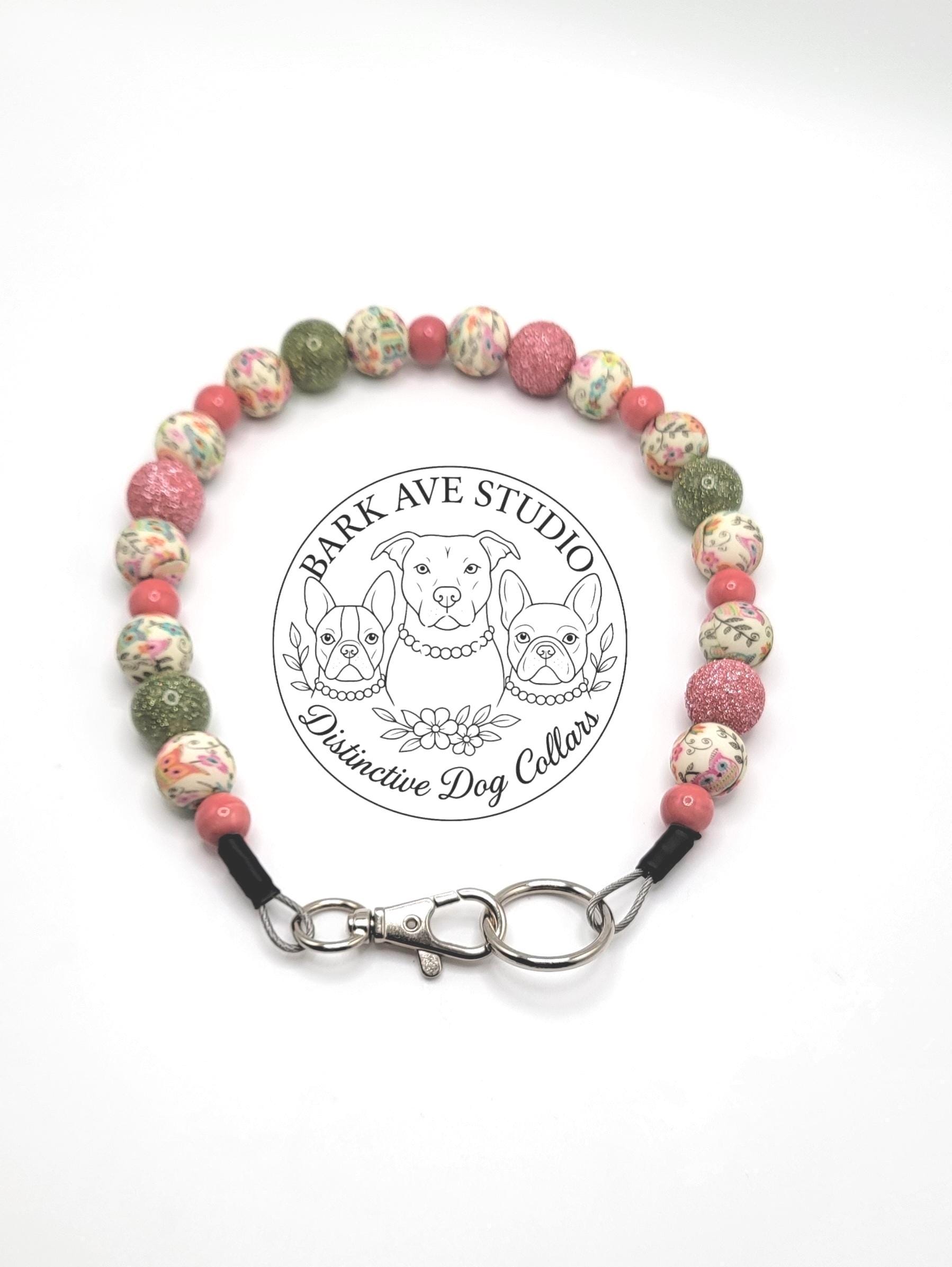 Let your pup strut in style with our Whimsical Owl Garden Bloom Dog Collar, handcrafted with a vibrant mix of coral pink shimmer, moss green glitter, and owl printed beads. This unique piece channels spring garden vibes and is perfect for dogs with a bold, playful spirit.