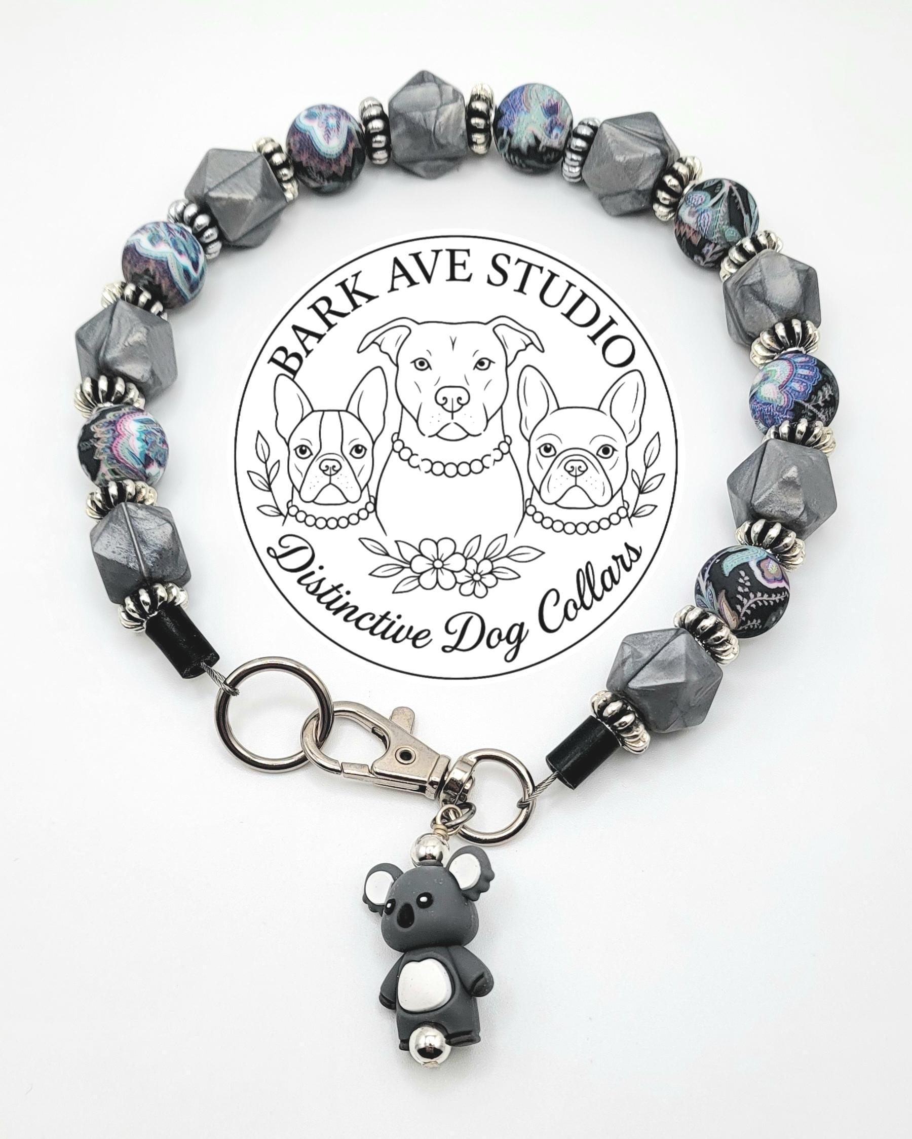 Let your pup channel pure magic with our Silver Mist Koala Dog Collar, handcrafted for dogs who deserve more than ordinary. Crafted with colorful botanical round silicone beads, gray metallic hexagon silicone beads, and chunky stainless steel spacer beads this collar really stands out!