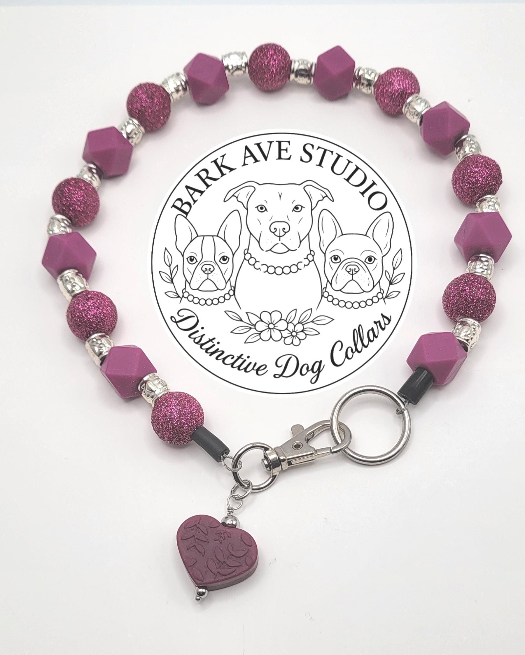 Let your pup shine in style with our Purple Sparkle Dog Collar from Bark Ave Studio! This handcrafted collar features dazzling glittered purple beads, faceted silicone accents, and textured silver spacers, creating a bold, elegant look for the trendsetting dog. A sweet purple heart charm adds the perfect finishing touch for extra personality and flair.