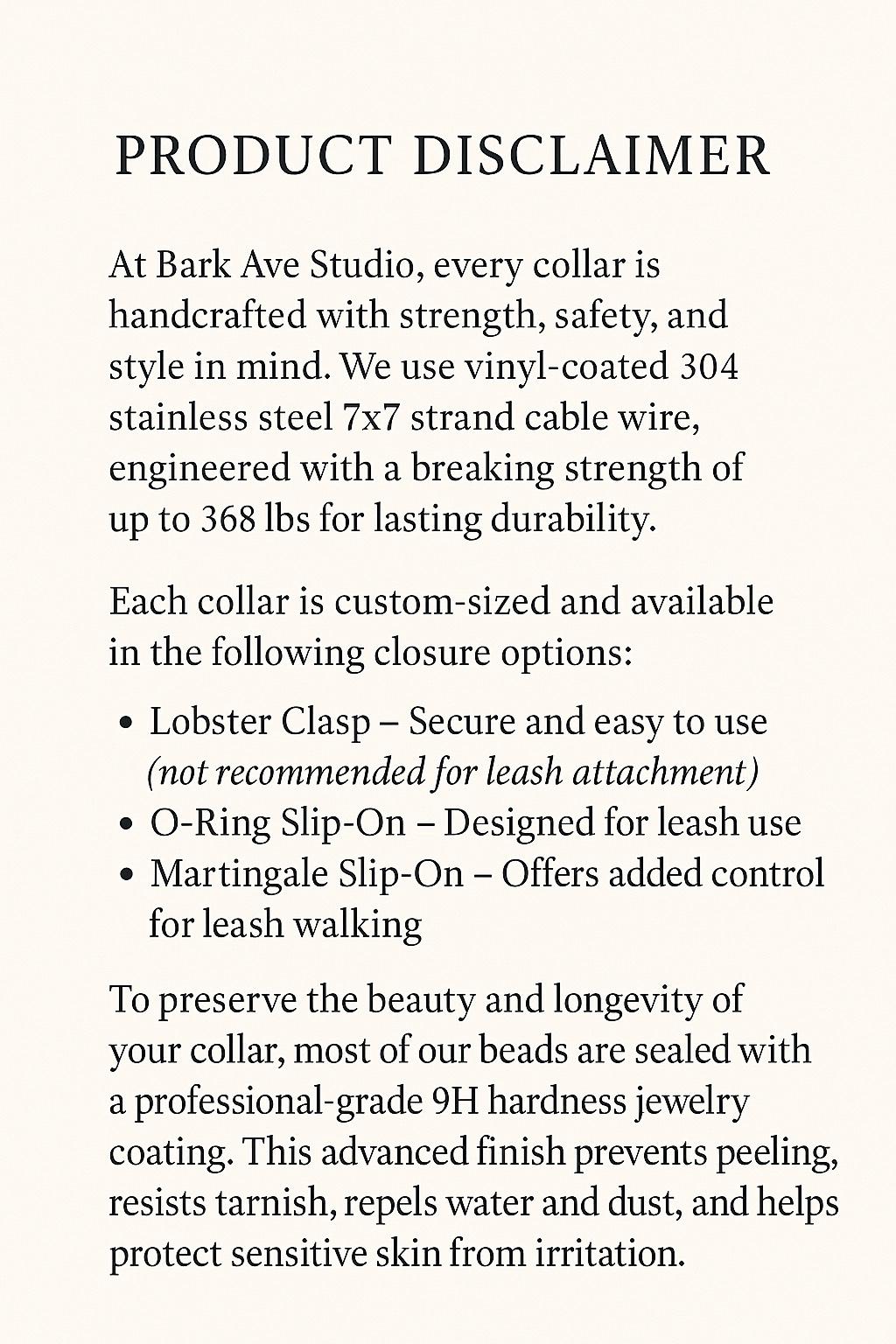 Love a collar but need a different size or closure? Just bark at us — we’re happy to help with custom sizing!