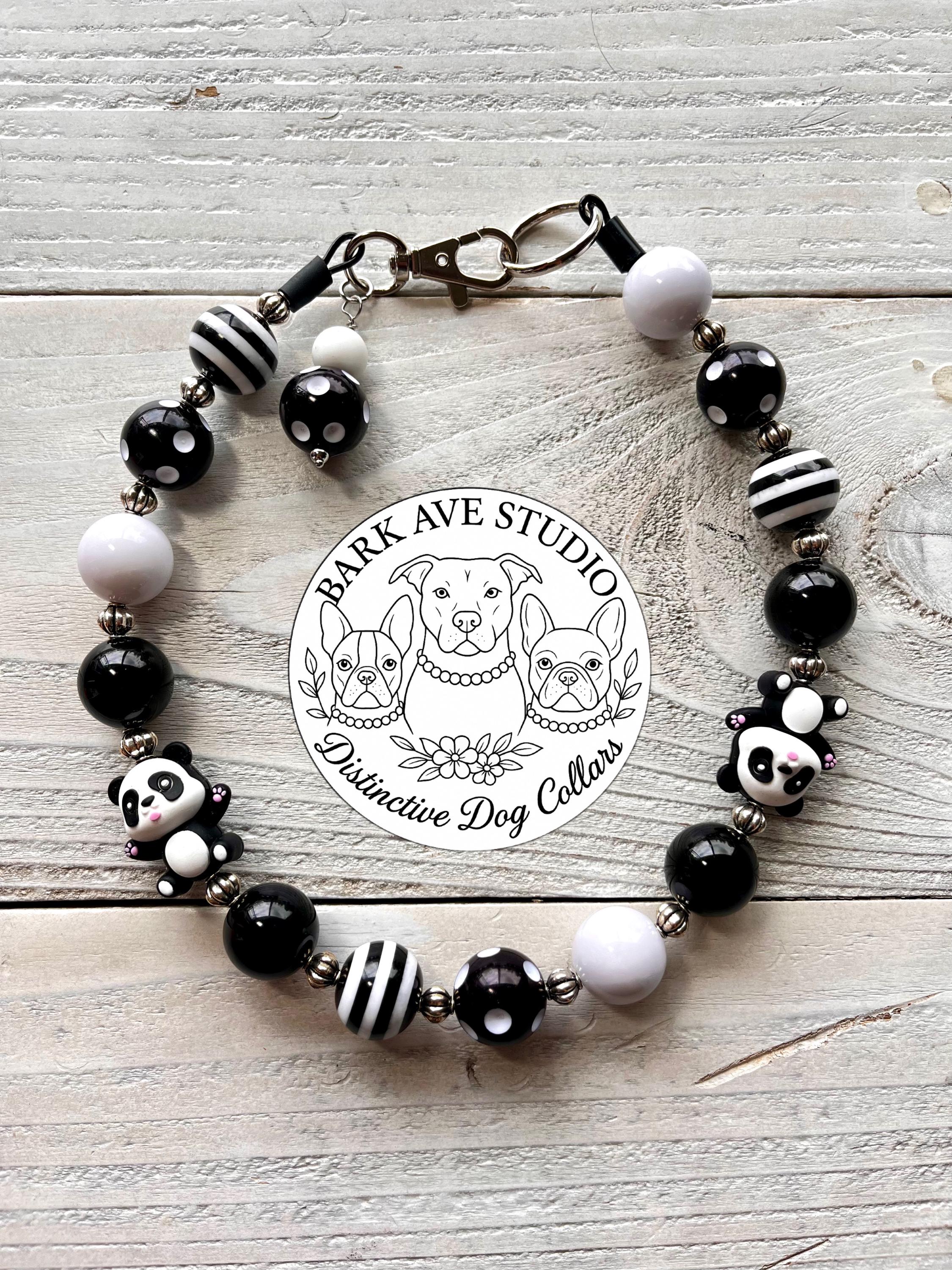 Step into a world of cuteness with our Panda Parade Beaded Dog Collar — a Bark Ave Studio exclusive! This playful collar features hand-strung black, white, and striped beads with adorable panda charms that bring a pop of personality to your pup’s style. Whether it’s a birthday, photo shoot, or just a walk around the block, this collar will make every outing a panda party!