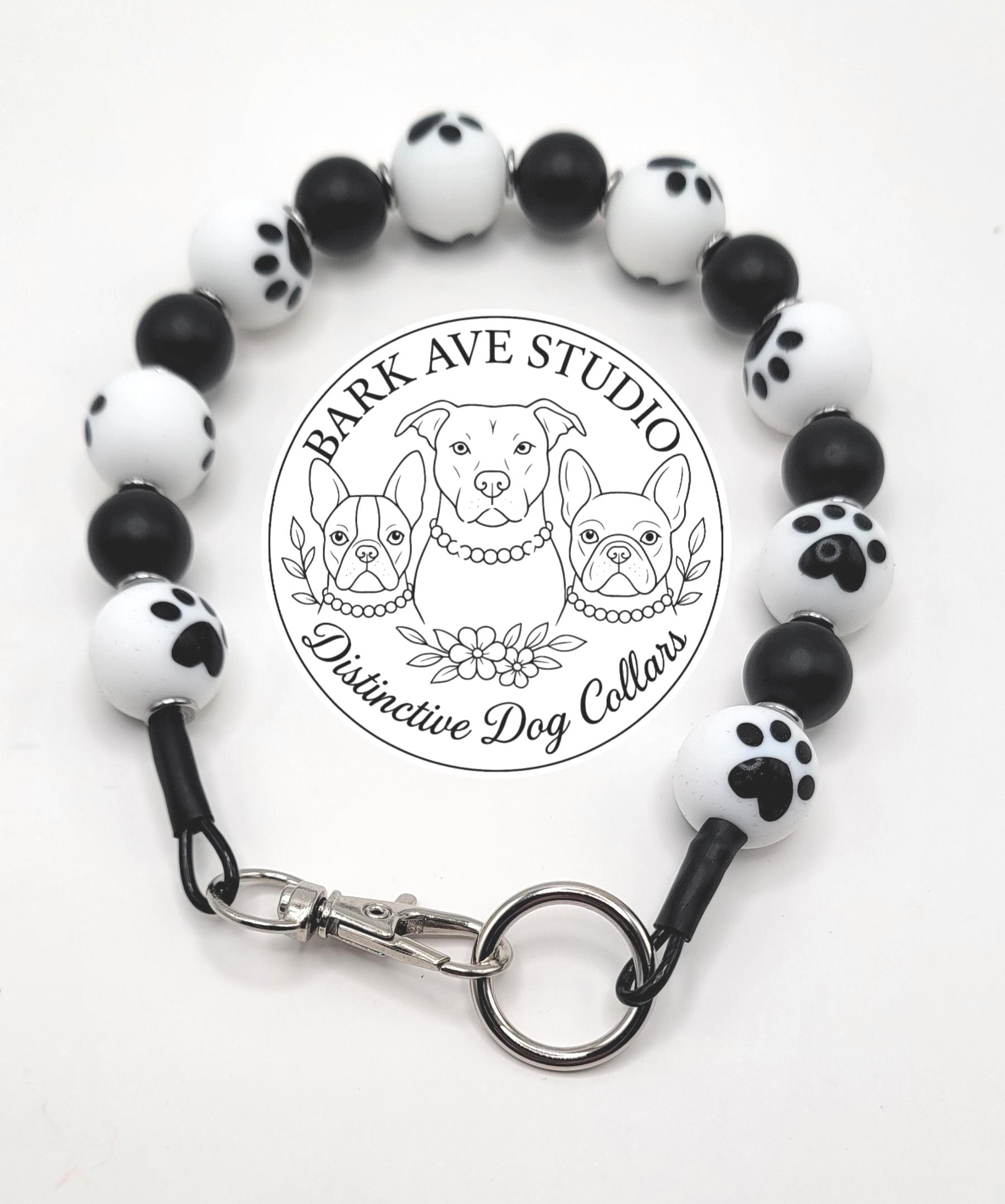 Unleash playful elegance with our Monochrome Paw Print Dog Collar, handcrafted exclusively at Bark Ave Studio. Featuring chunky black and white silicone beads with adorable paw print designs, black acrylic beads and stainless steel spacers. This collar is the perfect blend of bold style and pup personality!