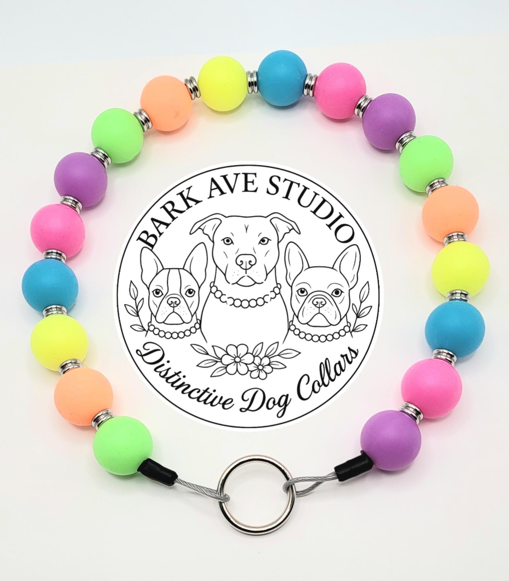 Meet the Neon Party Beaded Dog Collar – a bold, bright, and beaming accessory designed for dogs who love to stand out. This rainbow stunner is packed with jumbo neon silicone beads in juicy pop colors—think highlighter pinks, electric greens, sunshine yellows, and more—plus shiny stainless steel spacers that bring the bling.