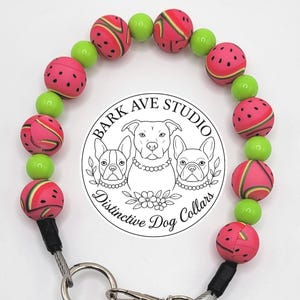 Bring the summer vibes to your pup’s wardrobe with our handcrafted Tropical Fruit Punch beaded dog collar! Bursting with sunshine yellow, juicy watermelon and pineapple silicone beads, hot pink rhinestone acrylic spacers, and glossy hot pink acrylic rounds—this collar is a bold splash of fun for beach days, pool parties, or everyday struts.