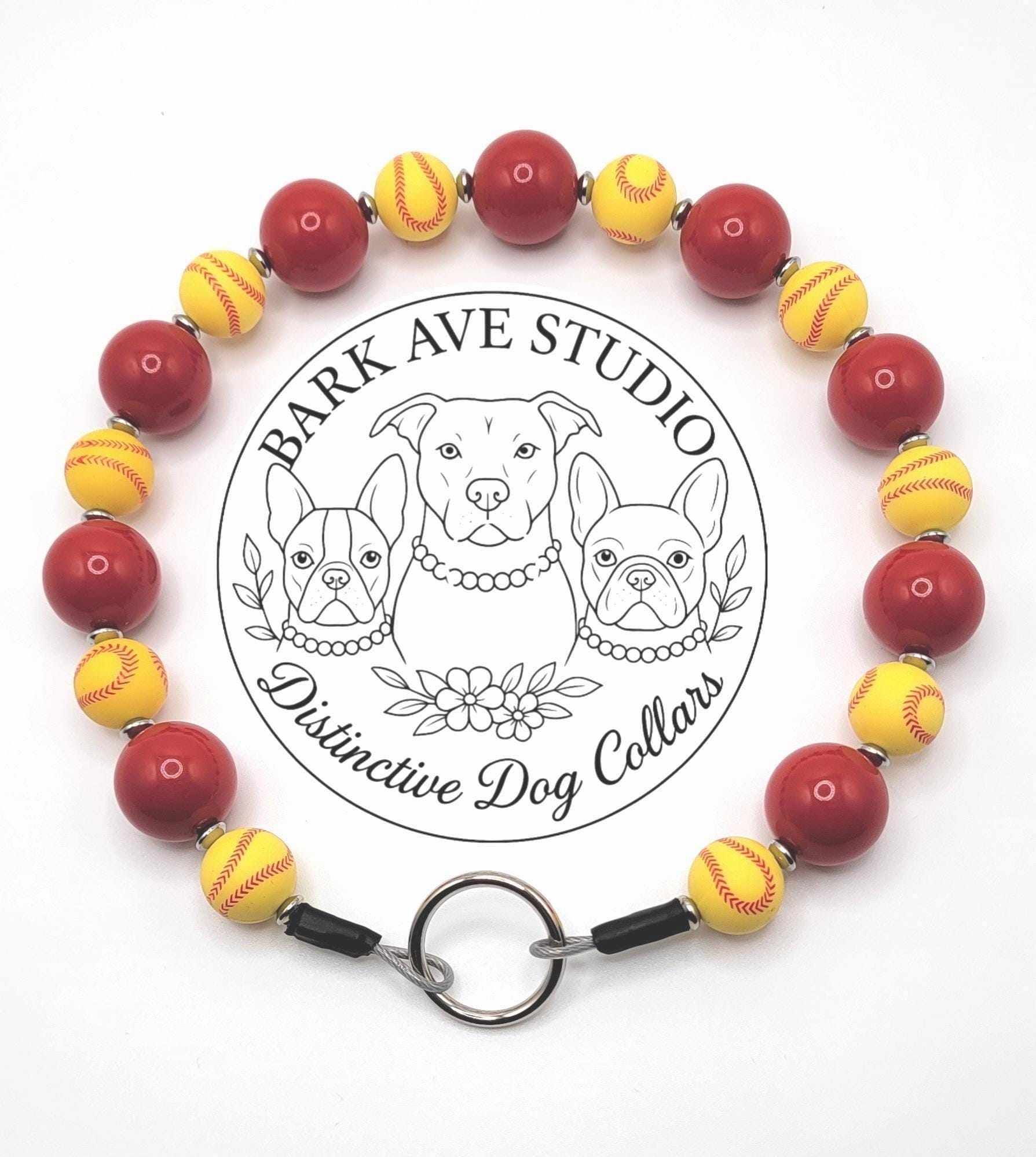 Let your pup rep their game-day spirit with our Softball Sweetheart beaded dog collar – a bold, sporty statement crafted for the biggest canine fans! This handmade collar features glossy red resin rounds and vibrant yellow softball-printed silicone beads, paired with stainless steel accents for that all-star shine.