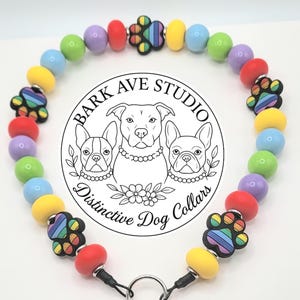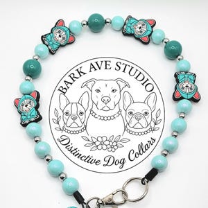 Add bold personality to your pup's style with this handcrafted beaded dog collar from Bark Ave Studio! Featuring a striking mix of 20mm pearly luster black beads, 25mm white skulls, and vintage looking Tibetan spacer beads. This unique collar is both spooky and stylish - perfect for Halloween or everyday edge.