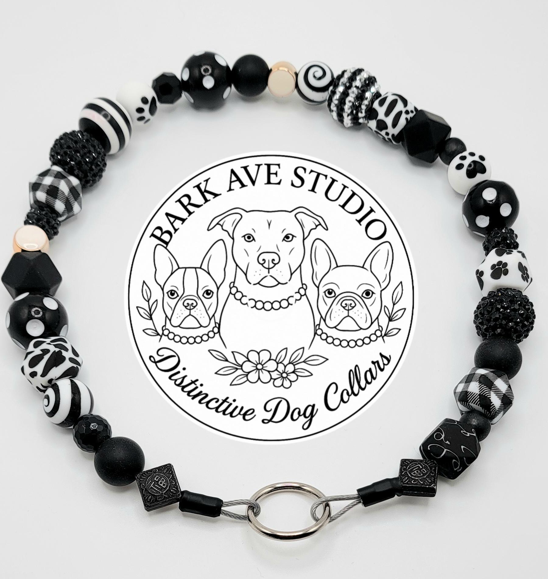 Does your dog ever get the Zoomies? Well this eye-catching black and white beaded dog collar from Bark Ave Studio is made for him/her. It is the perfect blend of playful charm and fashionable flair. Handmade with a curated mix of patterned, glitter, and textured beads, this unique accessory brings a bold, monochrome statement to your pup's look.