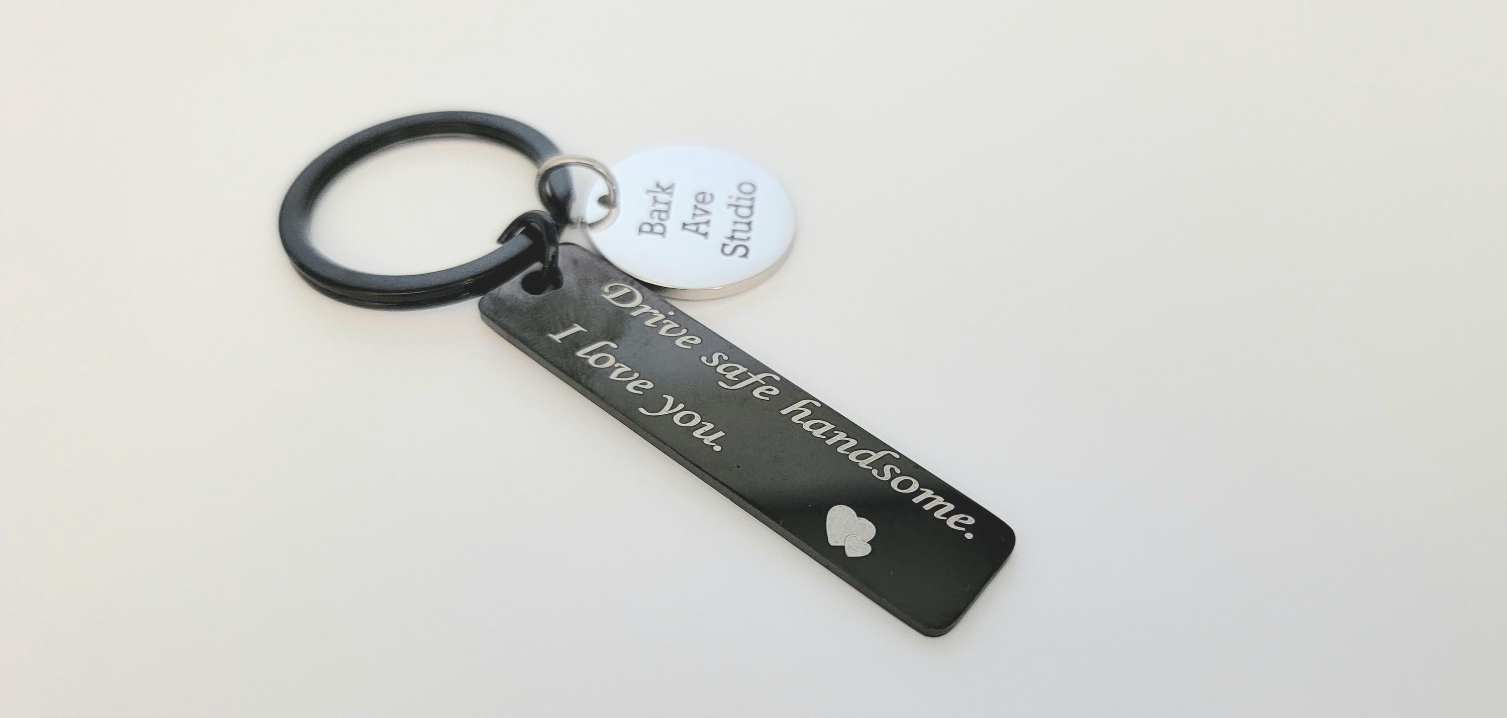 Keep your loved ones safe on the road with this heartfelt Drive Safely keychain from Bark Ave Studio. Crafted from durable stainless steel, this keychain features an engraved charm with the message: Drive Safe Handsome. I Love You" a playful reminder of your feelings for him. Perfect as a gift for your boyfriend, spouse, or even your child who just got their license. It's a daily reminder of love, care, and safety, making it both practical and meaningful.