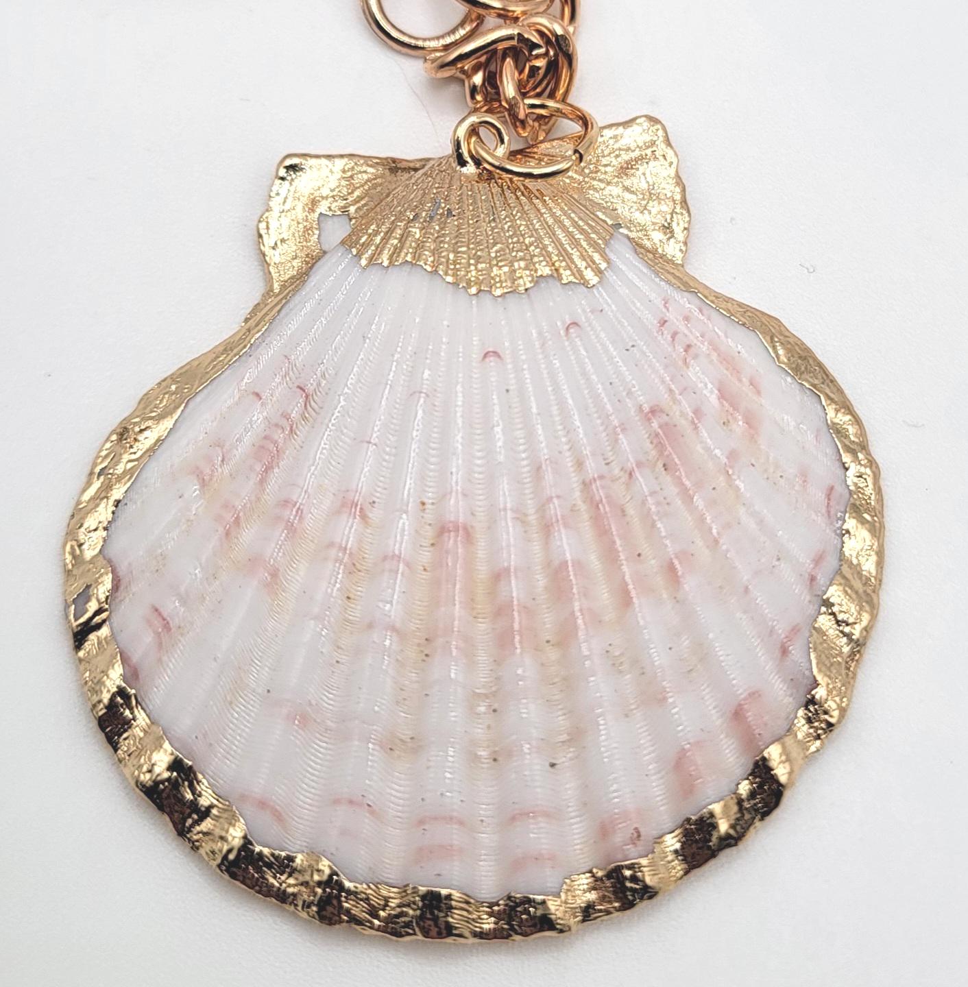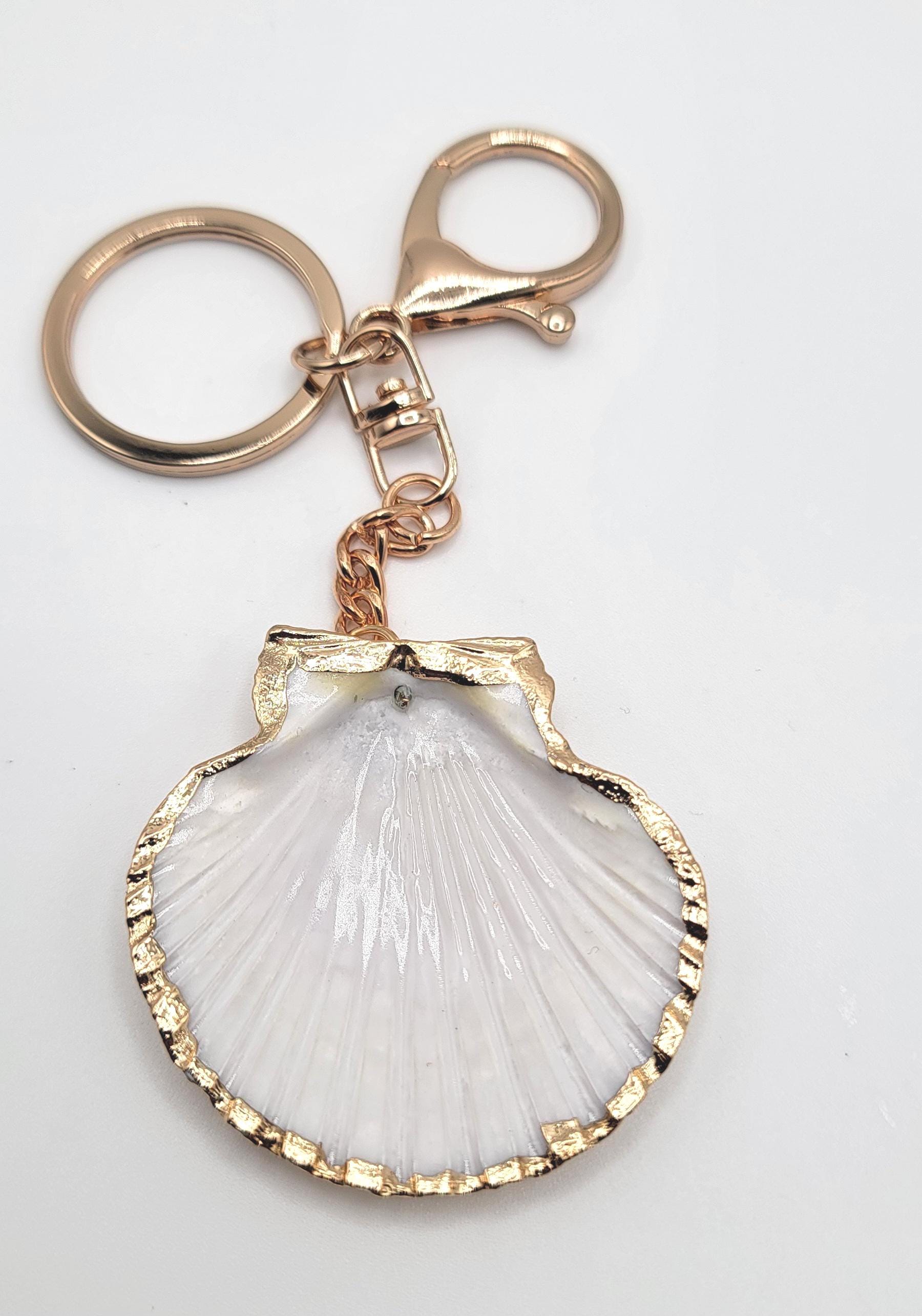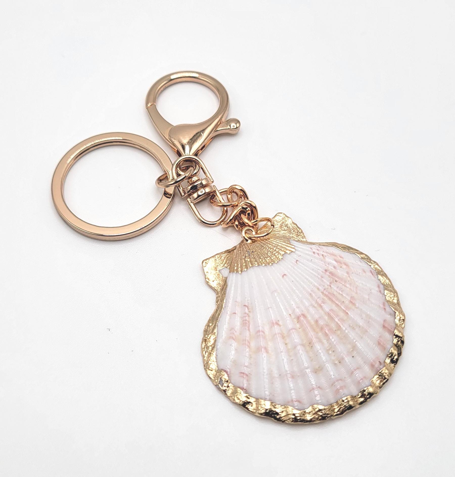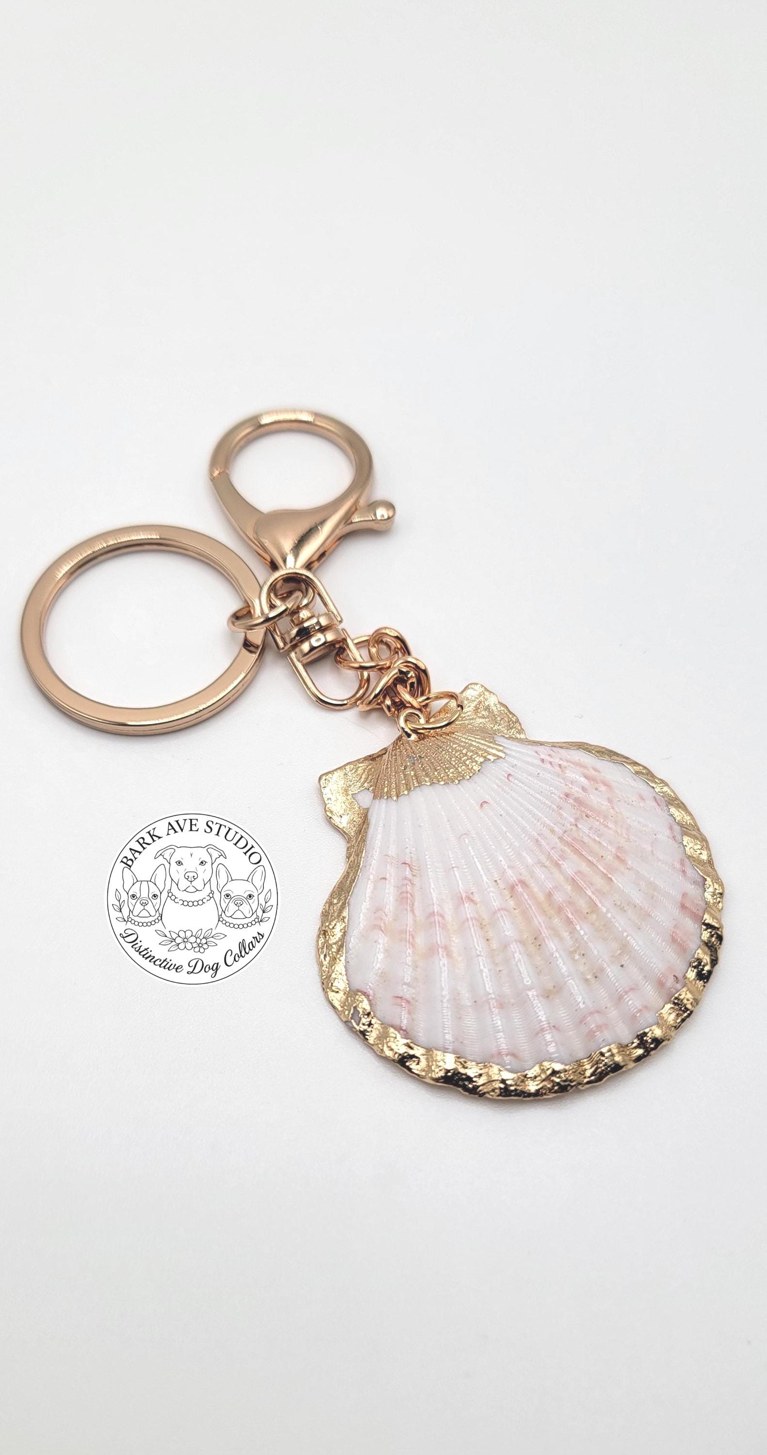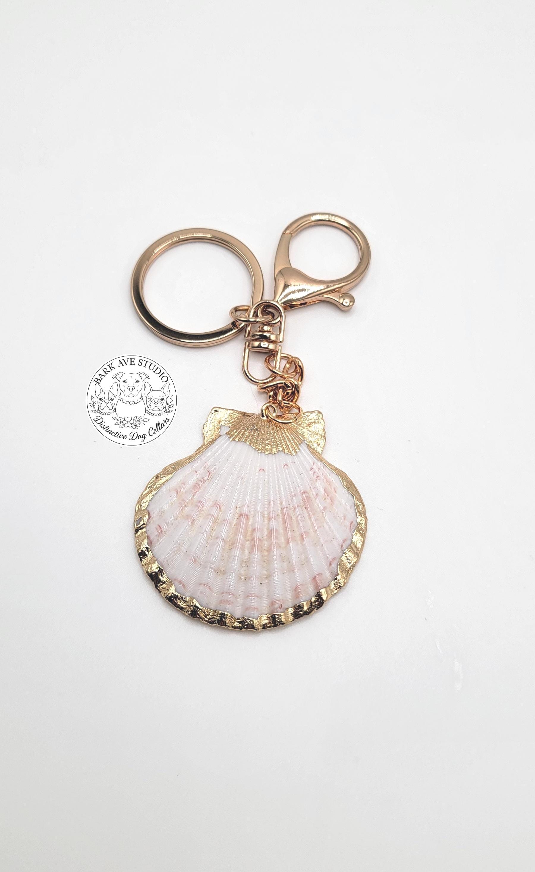 Carry a piece of the ocean with you wherever you go with this scallop seashell keychain bag charm. Featuring a natural scallop shell finished with shimmering gold trim, this accessory blends coastal charm with elegant style. Perfect as a keychain, purse charm, or beach-inspired accessory, it adds a touch of seaside beauty to your everyday essentials. Whether you're an ocean lover, coastal collector, or simply looking for a unique gift, this shell charm is a beautiful choice.