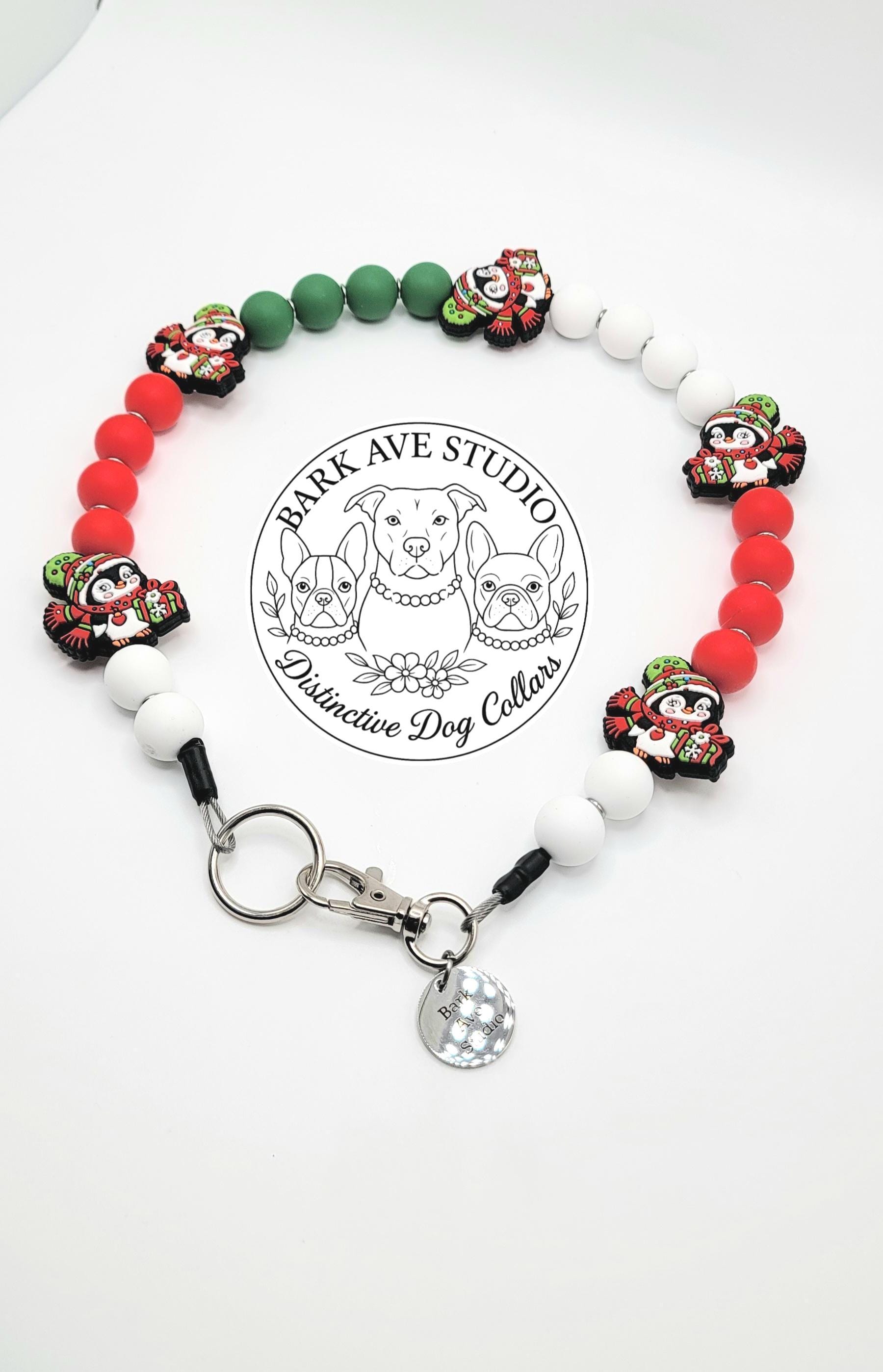 Add a touch of frosty fun to your pup's holiday wardrobe with this Penguin Christmas Beaded Dog Collar from Bark Ave Studio! Handcrafted with festive detail, this collar features cheerful 3D penguin beads dressed in scarves and hats, paired with bright red, white, and green beads for a merry pop of Christmas color. It's the perfect statement piece for holiday photos, festive walks, or under-the-tree surprises for your favorite furry friends.