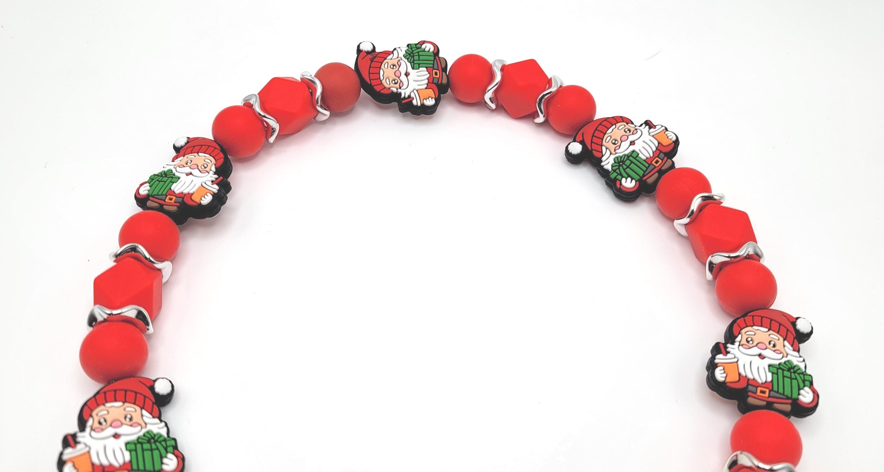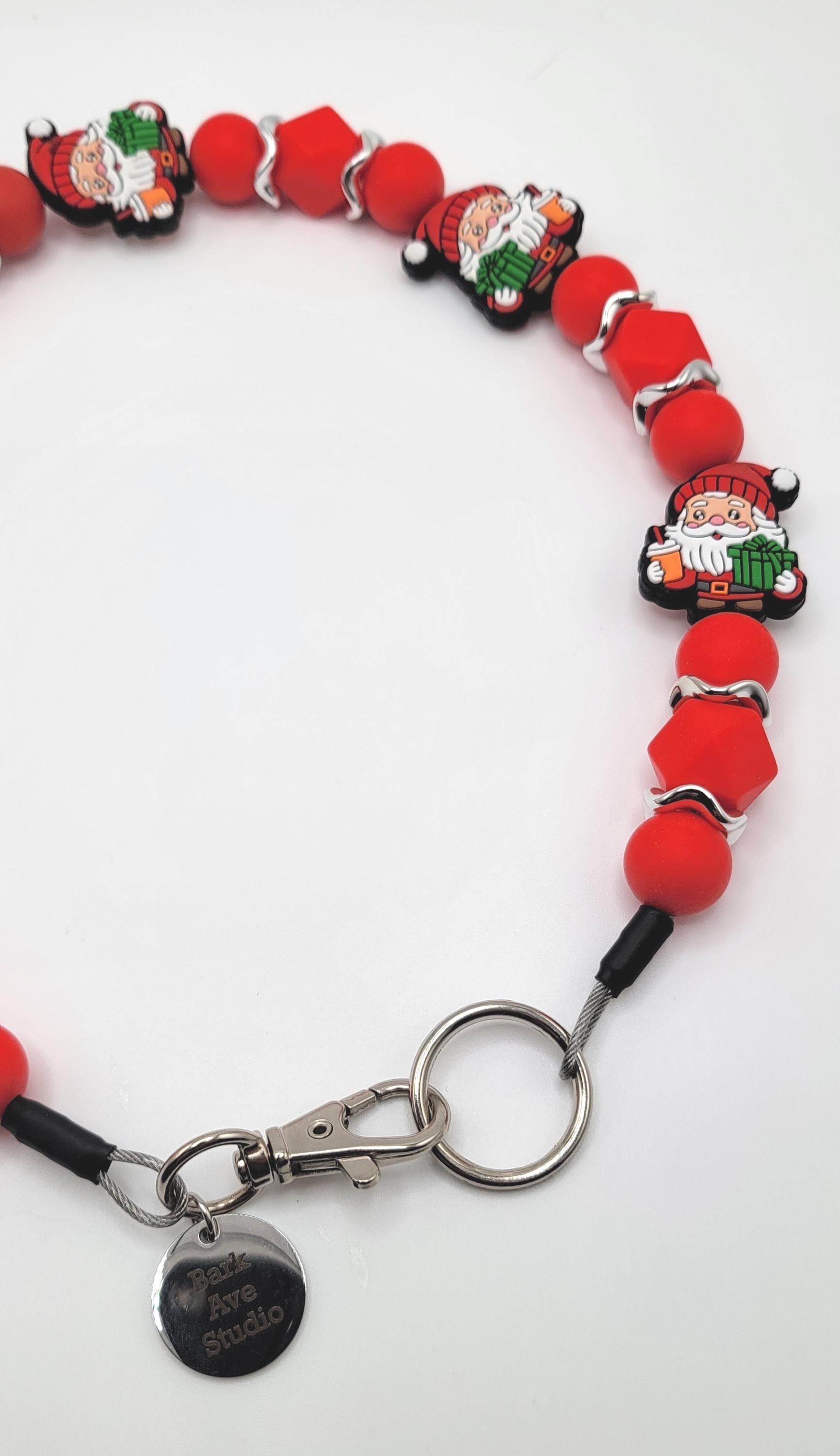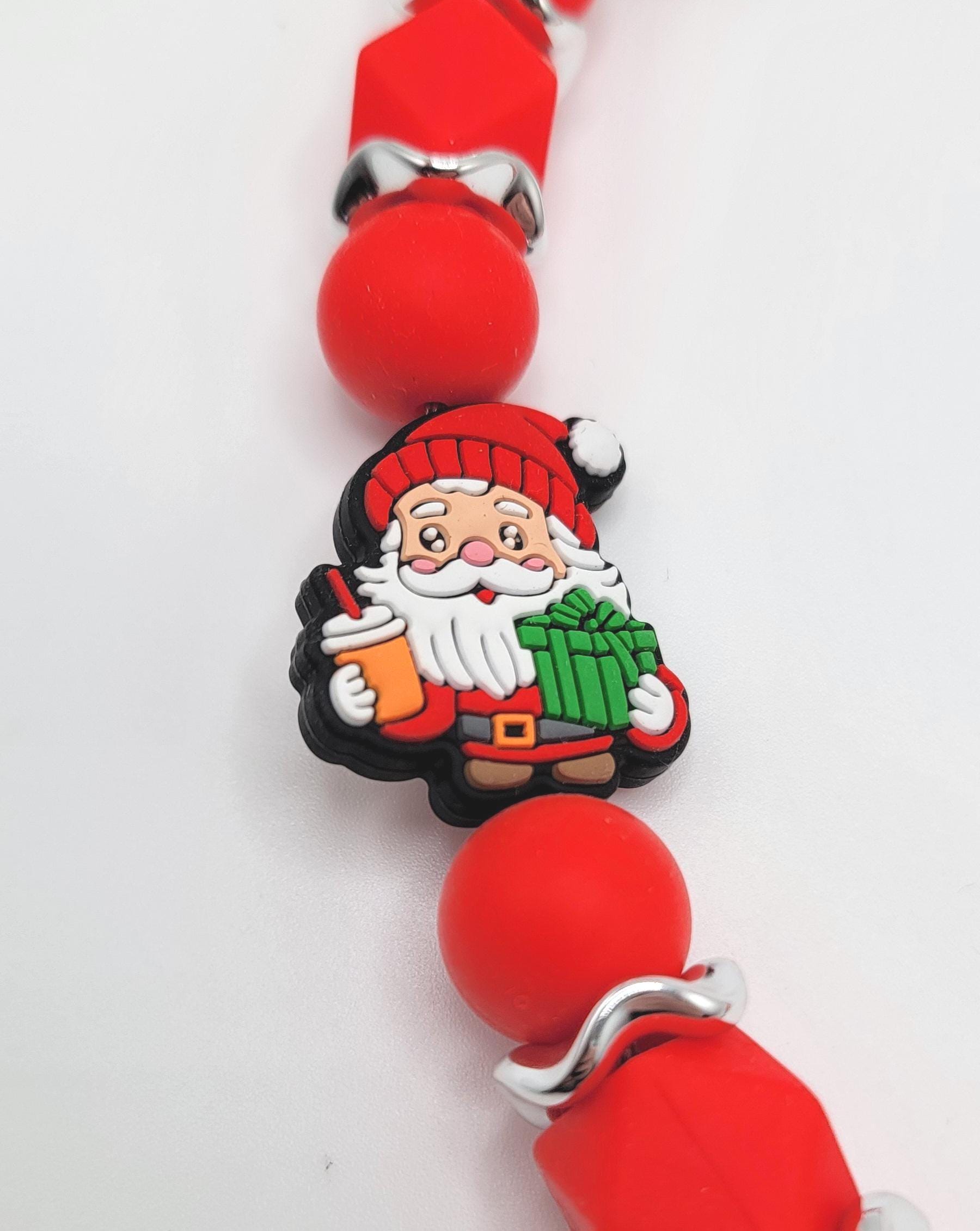 Make your pup the jolliest one under the tree with this Santa Christmas Dog Collar from Bark Ave Studio! This collar features adorable Santa Claus beads holding gifts and a hot cup of coffee, accented by red hexagon-shaped beads and silver wavy spacers for extra sparkle. Perfect for Christmas photos, festive walks, or gifting to a dog lover, this collar blends durability and style - designed to be both eye-catching and secure.