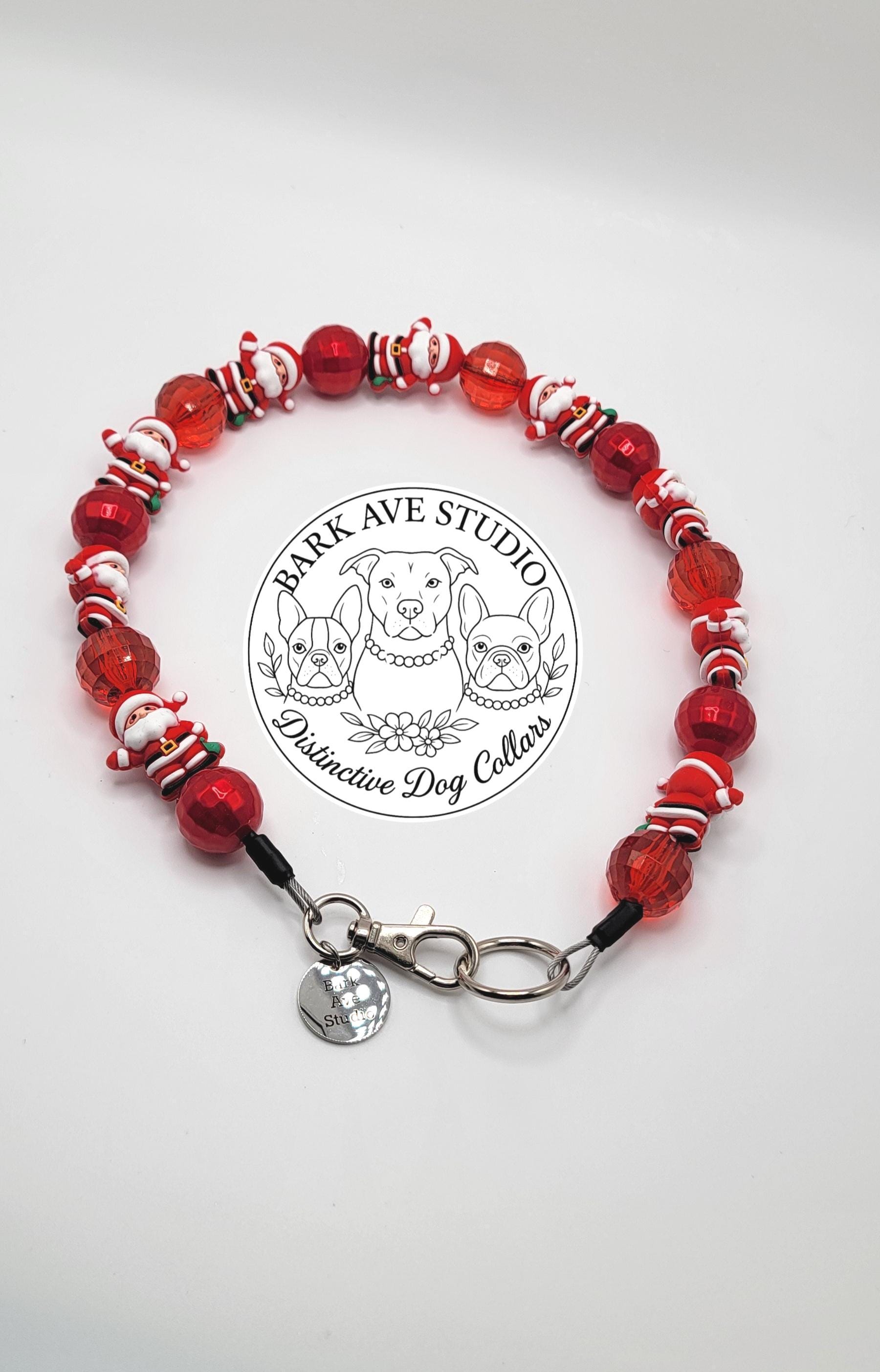 Ho Ho Ho! Get your pup ready for the holiday season with this Santa Claus Christmas Dog Collar from Bark Ave Studio - the perfect mix of festive sparkle and handcrafted charm! This joyful beaded collar features adorable Santa charms, vibrant red faceted beads, and playful translucent beads in candy cane colors. Each detail captures the magic of Christmas, making it a perfect accessory for holiday photos, parties, or gift giving.