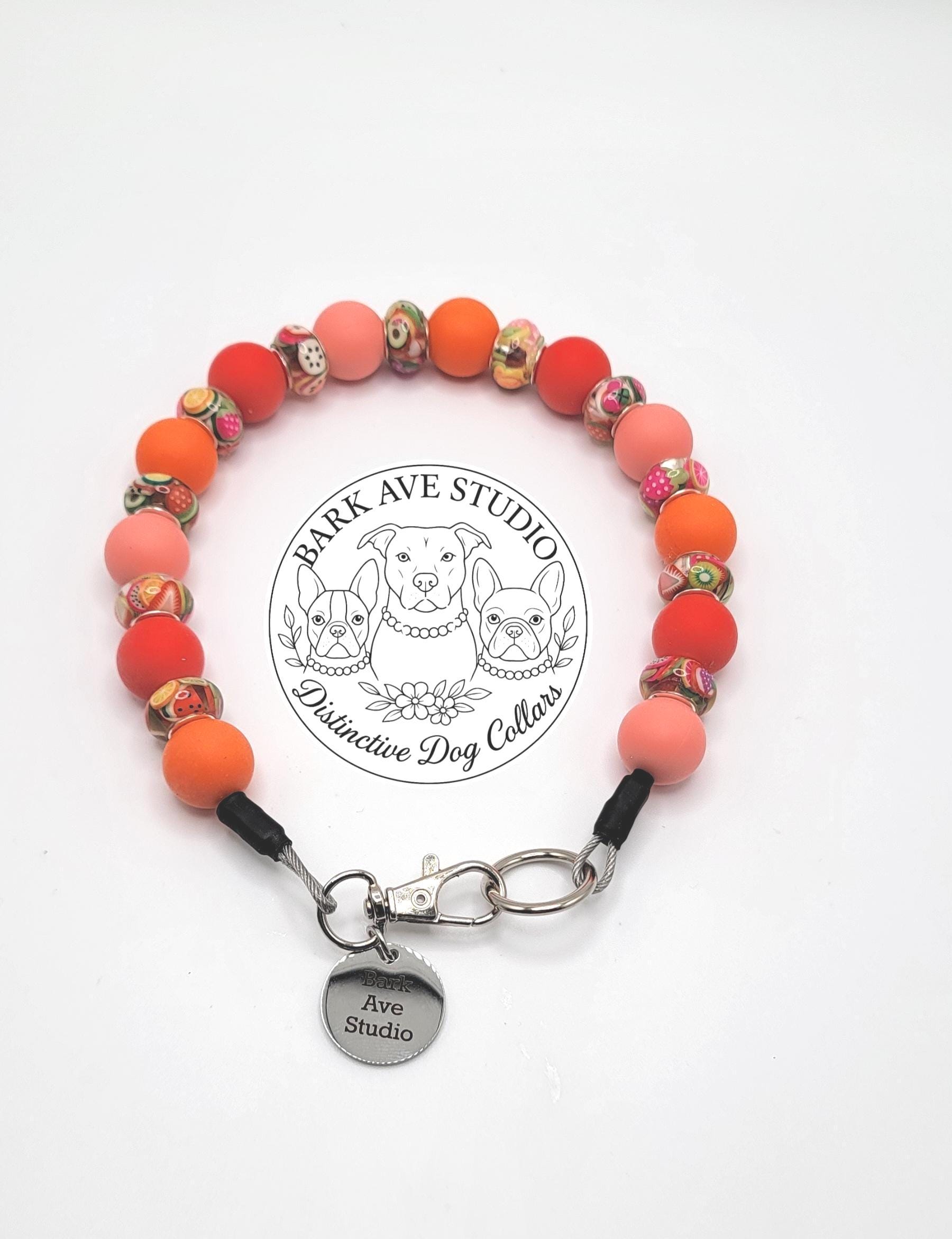 Bright, bold, and bursting with summer vibes! This Citrus Summer Beaded Dog Collar from Bark Ave Studio is the perfect pop of color for your pup's warm-weather adventures. Handcrafted with vibrant orange, coral, pink matte beads, and detailed fruit accent beads featuring lemons, strawberries, and citrus slices, this collar captures the fun and freshness of summertime. Perfect for beach days, outdoor walks, or just adding a cheerful splash of color, this handmade collar brings personality and playfulness to every outing.