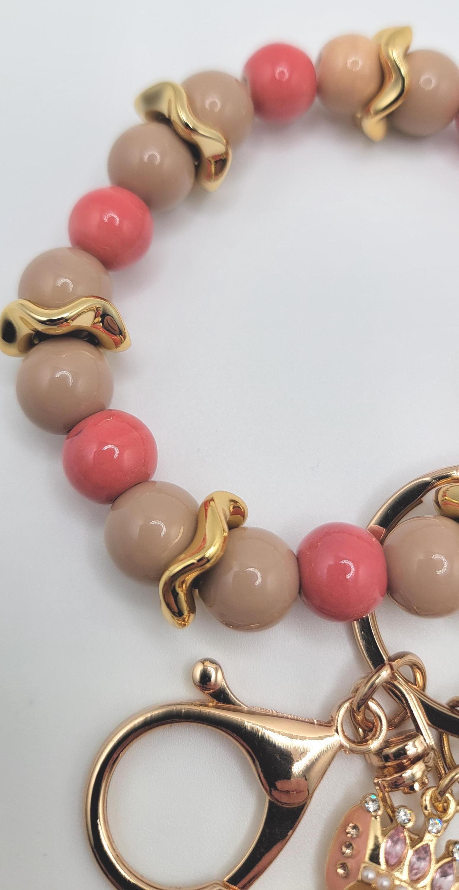 Never dig through your bag for your keys again! This trendy and stylish beaded wristlet is perfect for busy, on-the-go lifestyles. Designed with a strong and durable stretch cord, it easily slips on and off your wrist for hands-free convenience. The lobster clasp makes it simple to attach to your purse, backpack, badge, or even a diaper bag. Perfect for gifting or treating yourself!