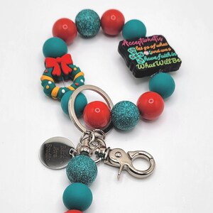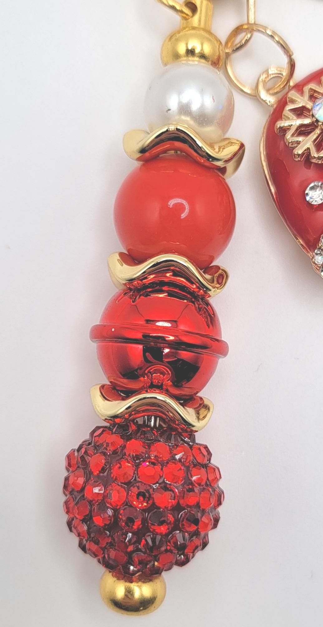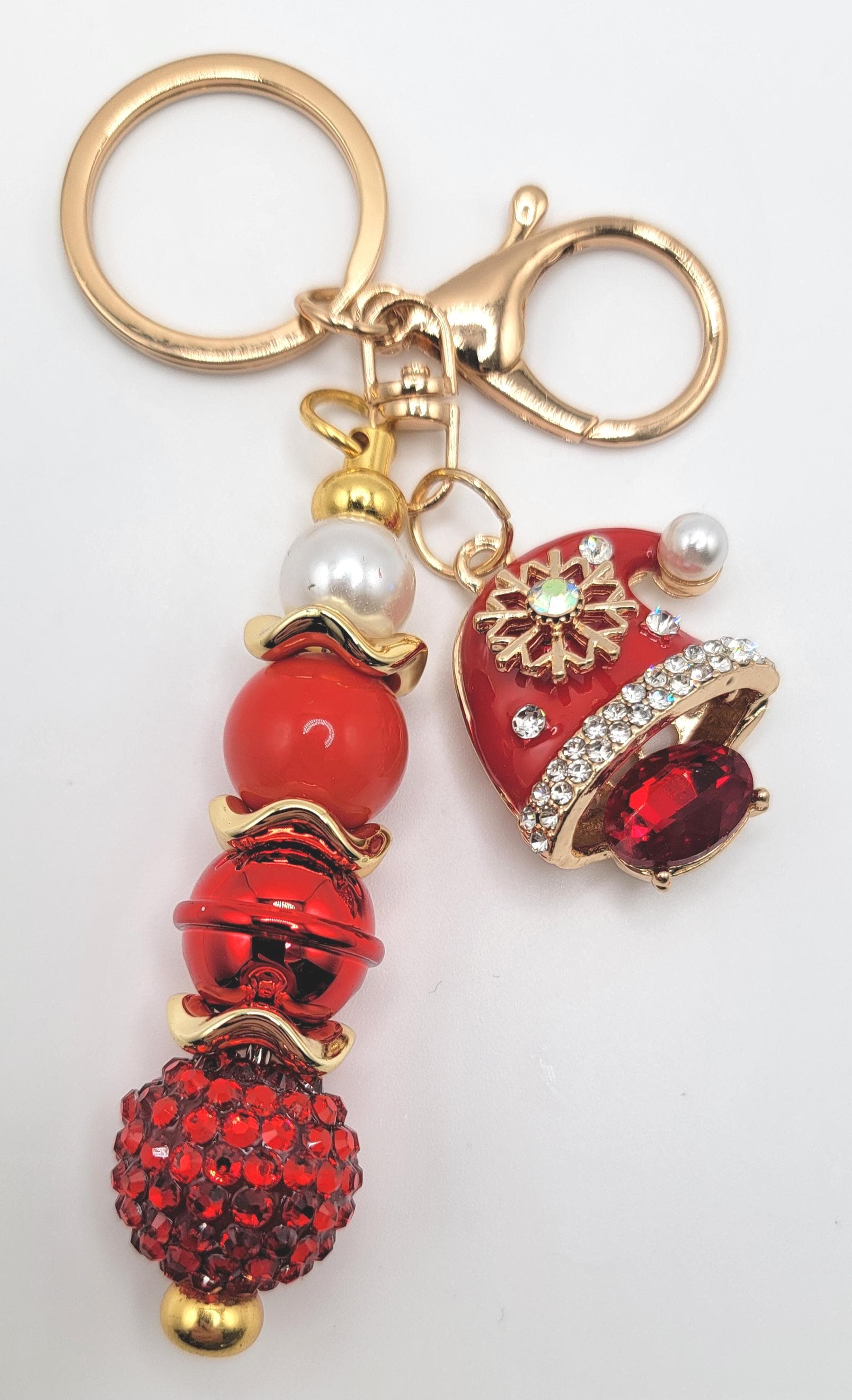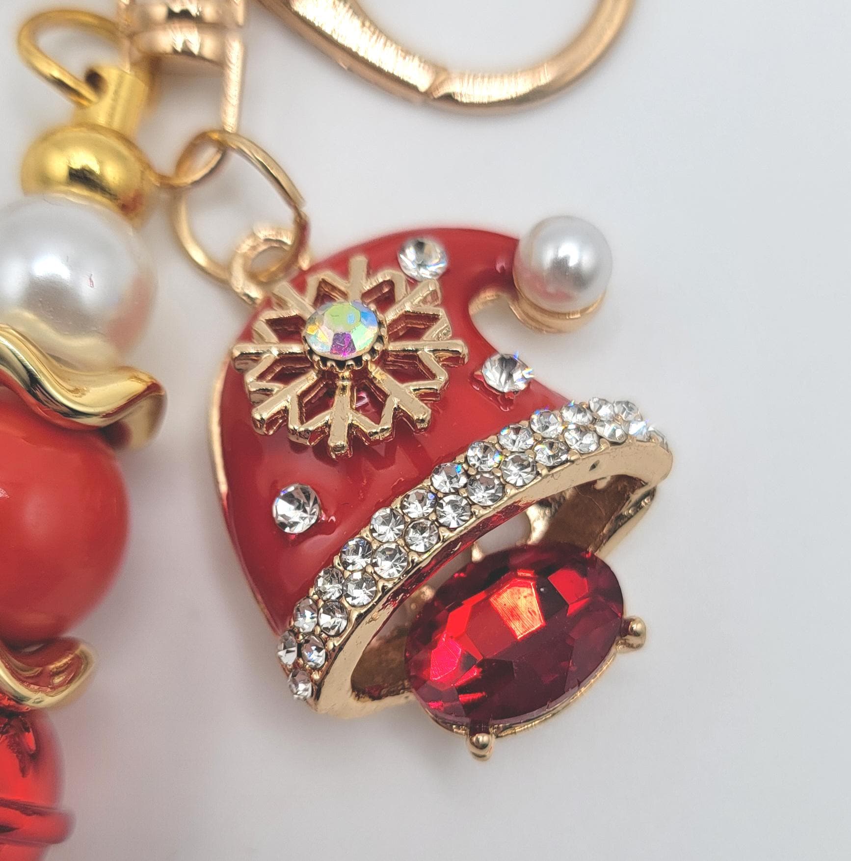 Add a little sparkle to your season with this handmade red Christmas bling keychain. Crafted with shimmering rhinestone and pearl beads, metallic gold spacers, and a jingle-bell accent, it's finished with a dazzling Santa hat charm that chimes with festive flair. Perfect as a holiday accessory, stocking stuffer, or gift, this elegant keychain adds a touch of Christmas magic to any purse, bag, or set of keys. A festive keepsake handmade with love by Bark Ave Studio.