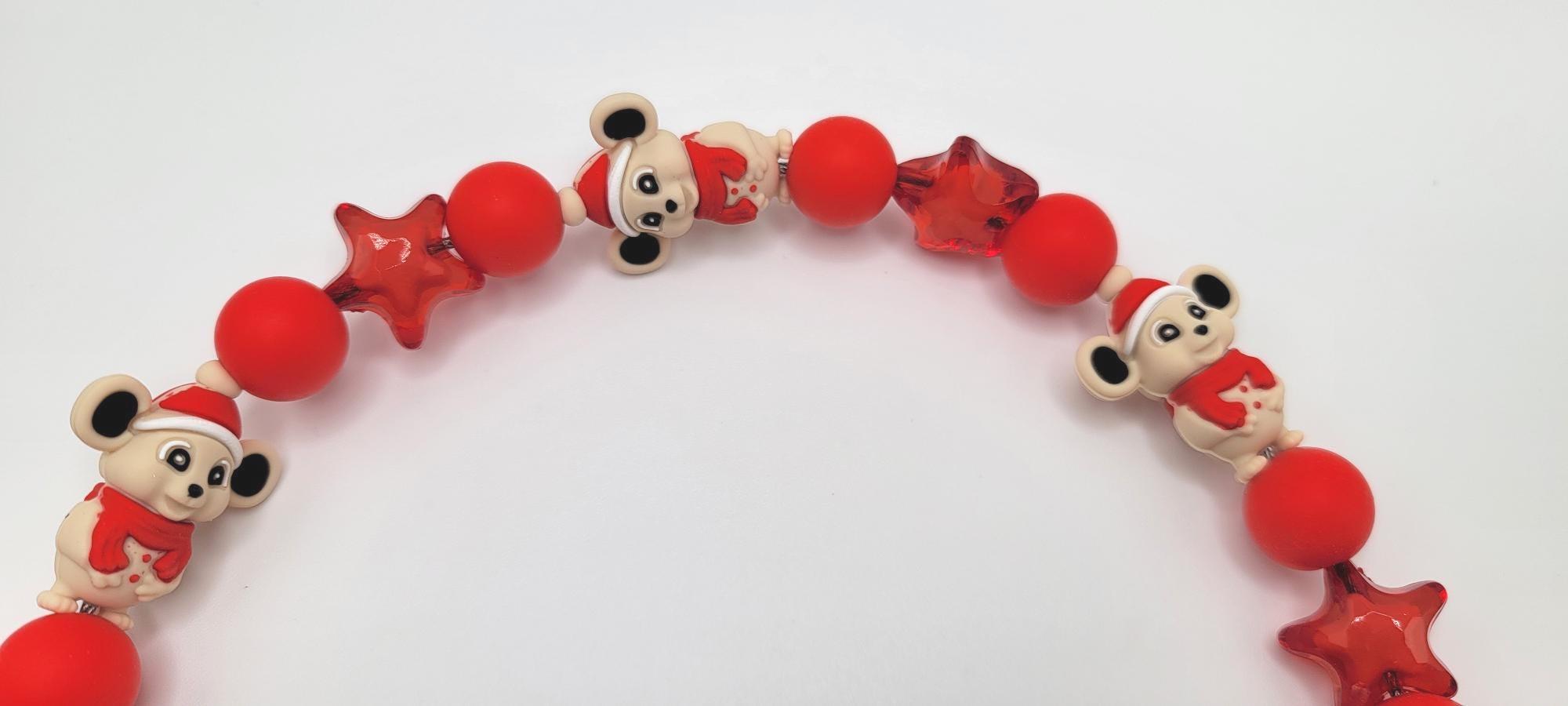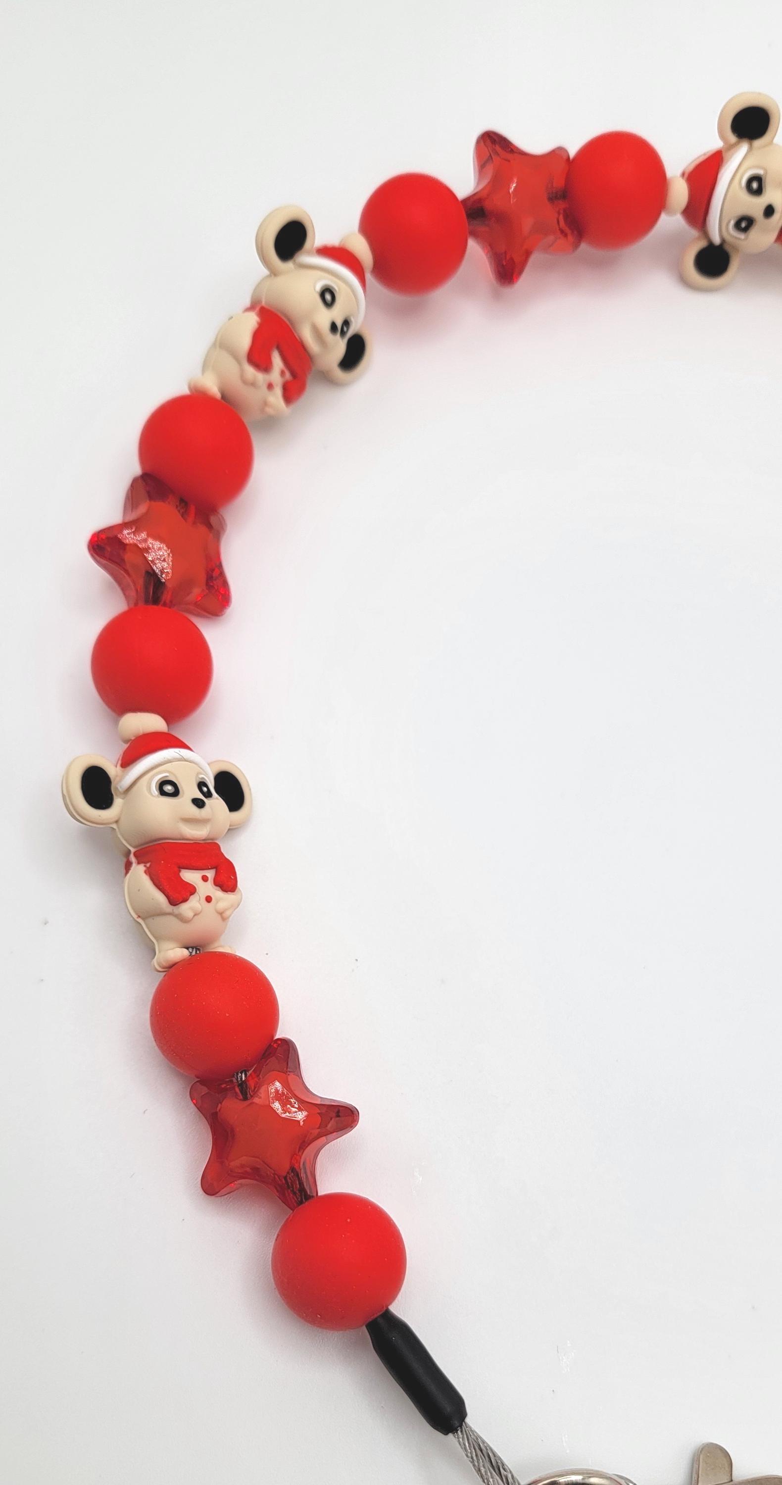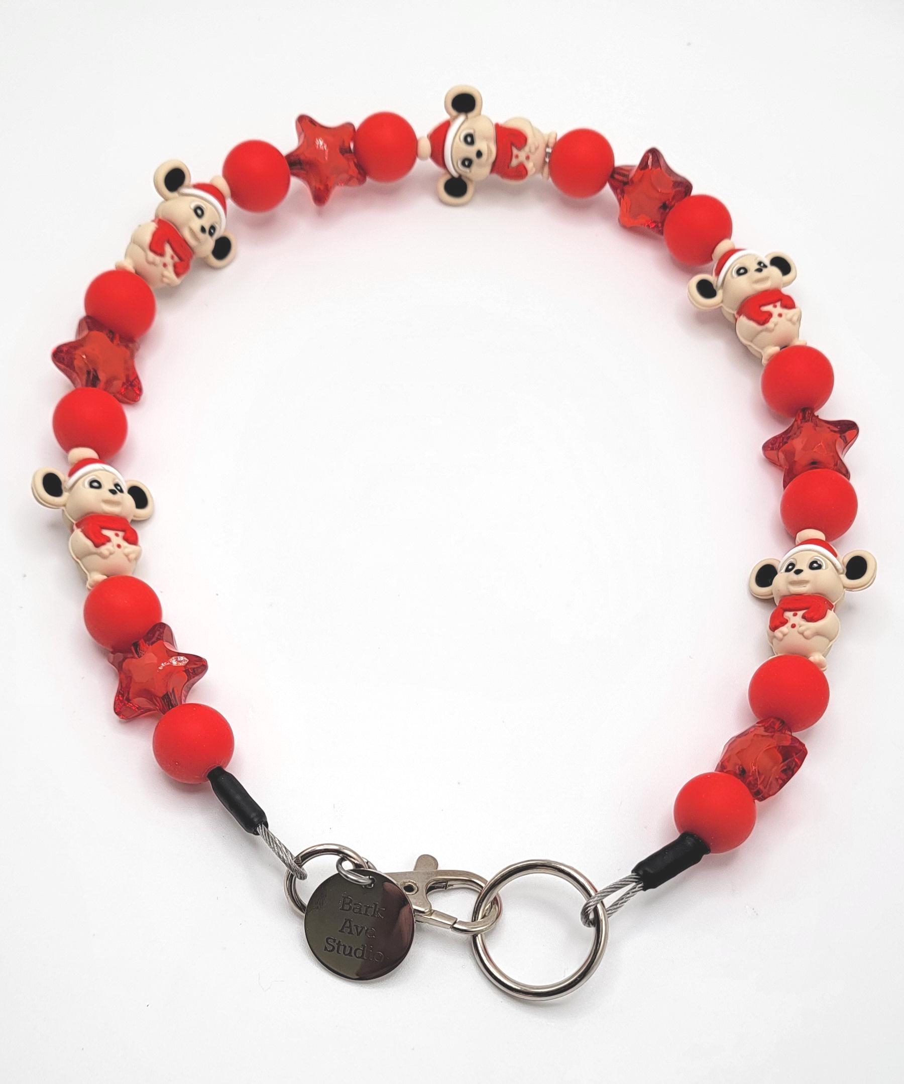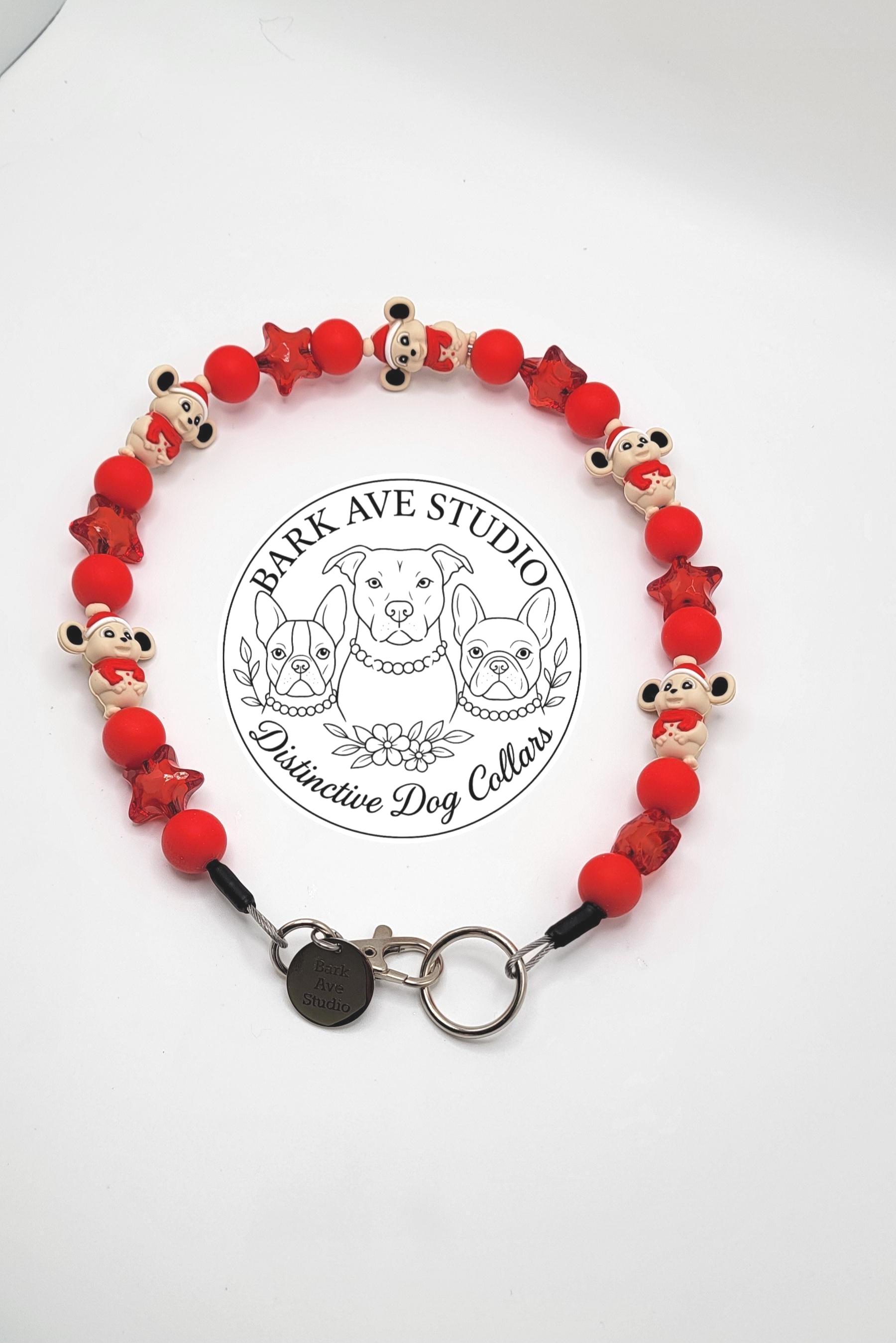 Make your pup the star of the holidays with this Red Christmas Mouse Beaded Dog Collar from Bark Ave Studio! this handmade holiday collar features adorable Santa mouse beads, bright red Stars and red round bead accents for the perfect festive look. Perfect for seasonal walks, photo shoots, or as a cheerful holiday gift for your favorite furry friend.