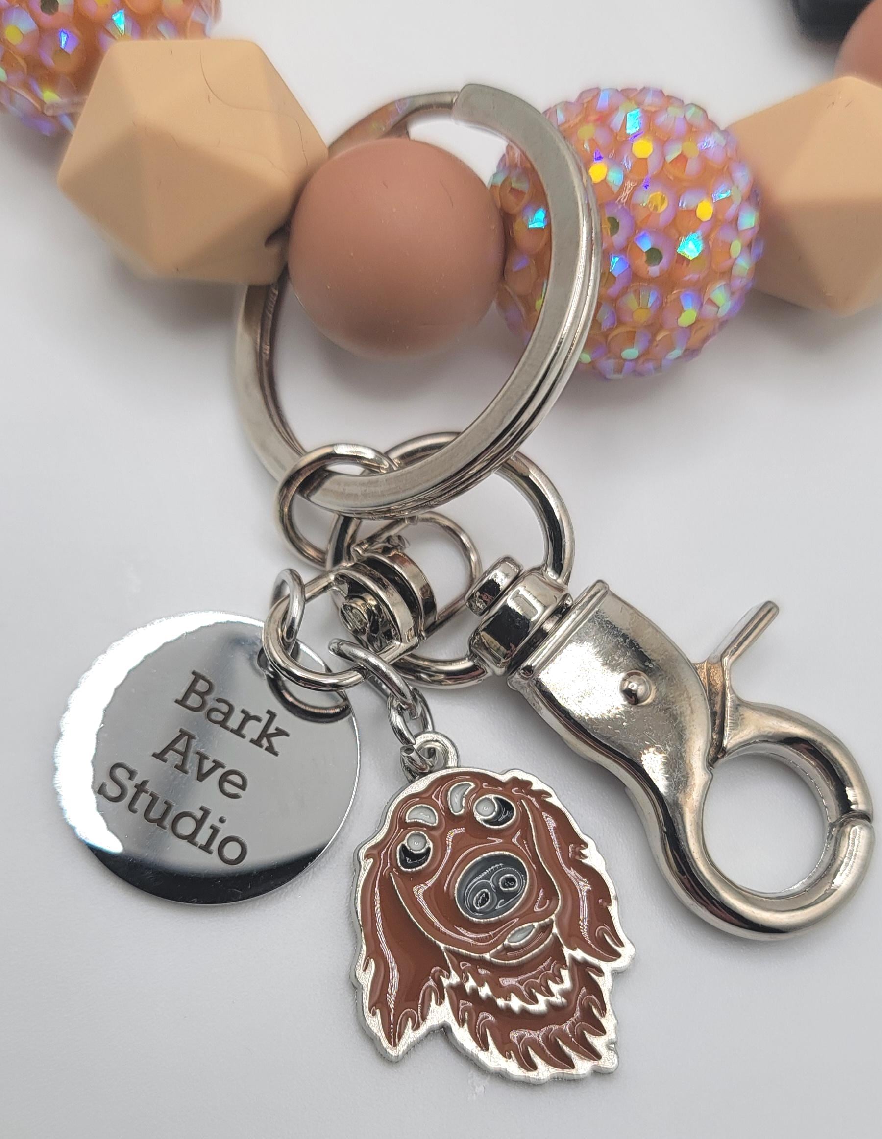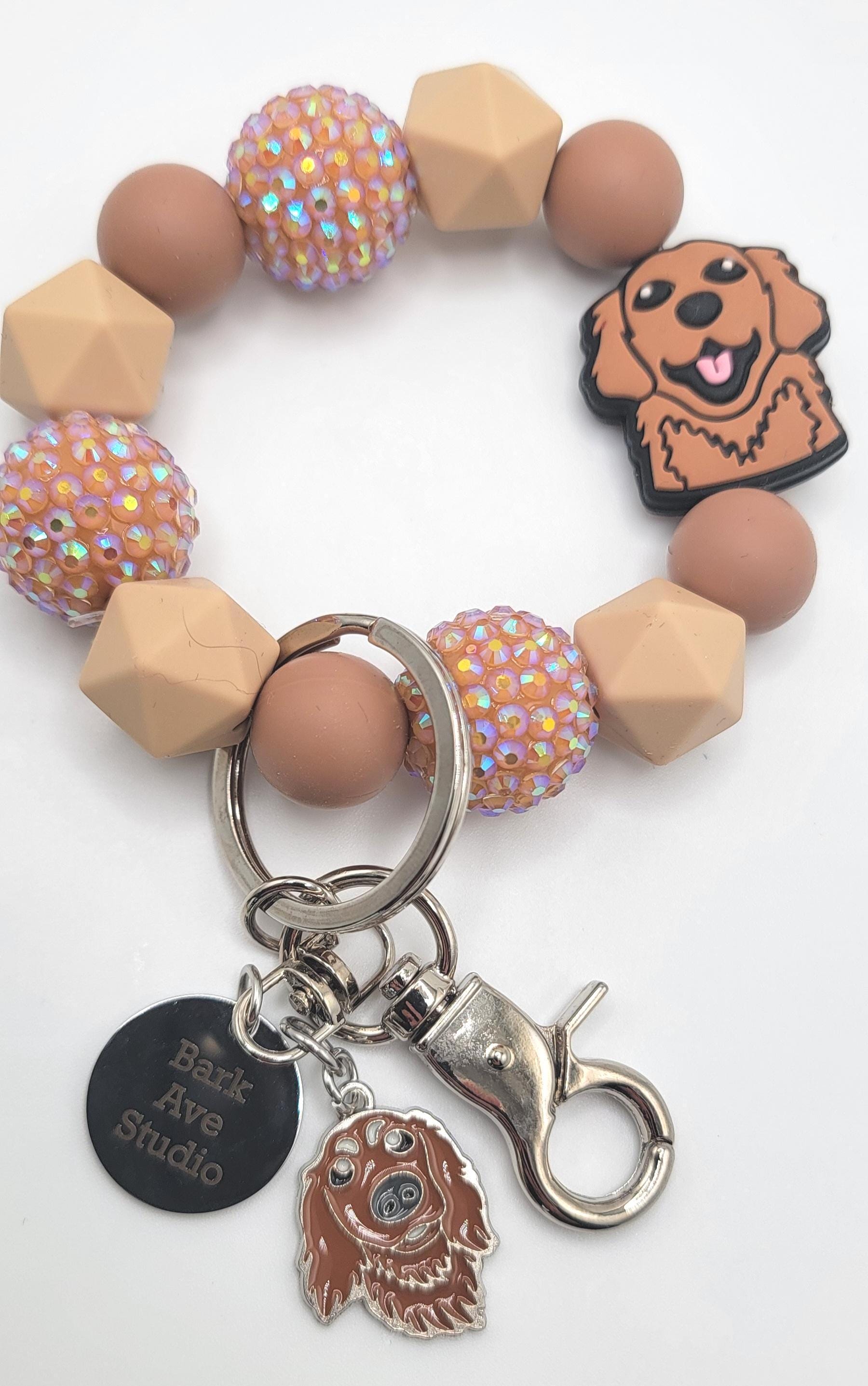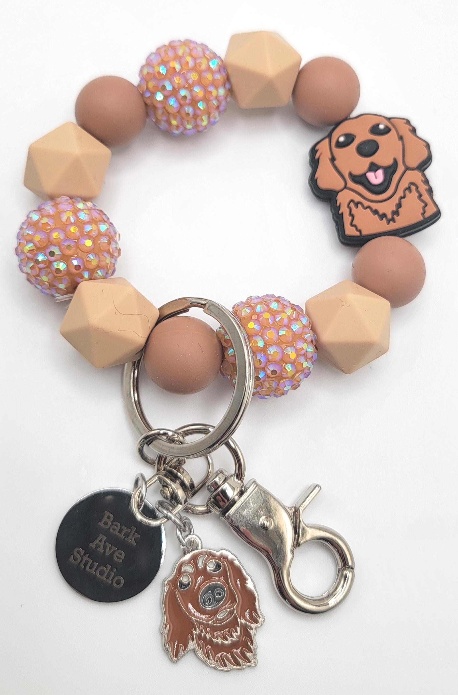 Never dig through your bag for your keys again! Celebrate your love for dogs with this adorable Golden Retriever Sparkle Beaded Keychain! Handcrafted with shimmering golden and cream beads, sparkling rhinestone accents, and a charming golden retriever charm, this keychain is the perfect blend of playful and elegant. The sturdy lobster clasp makes it easy to attach to your keys, purse, or tote - keeping a touch of puppy love with you everywhere you go! A perfect gift for dog moms, pet lovers, or anyone who adores golden retrievers and handmade accessories.