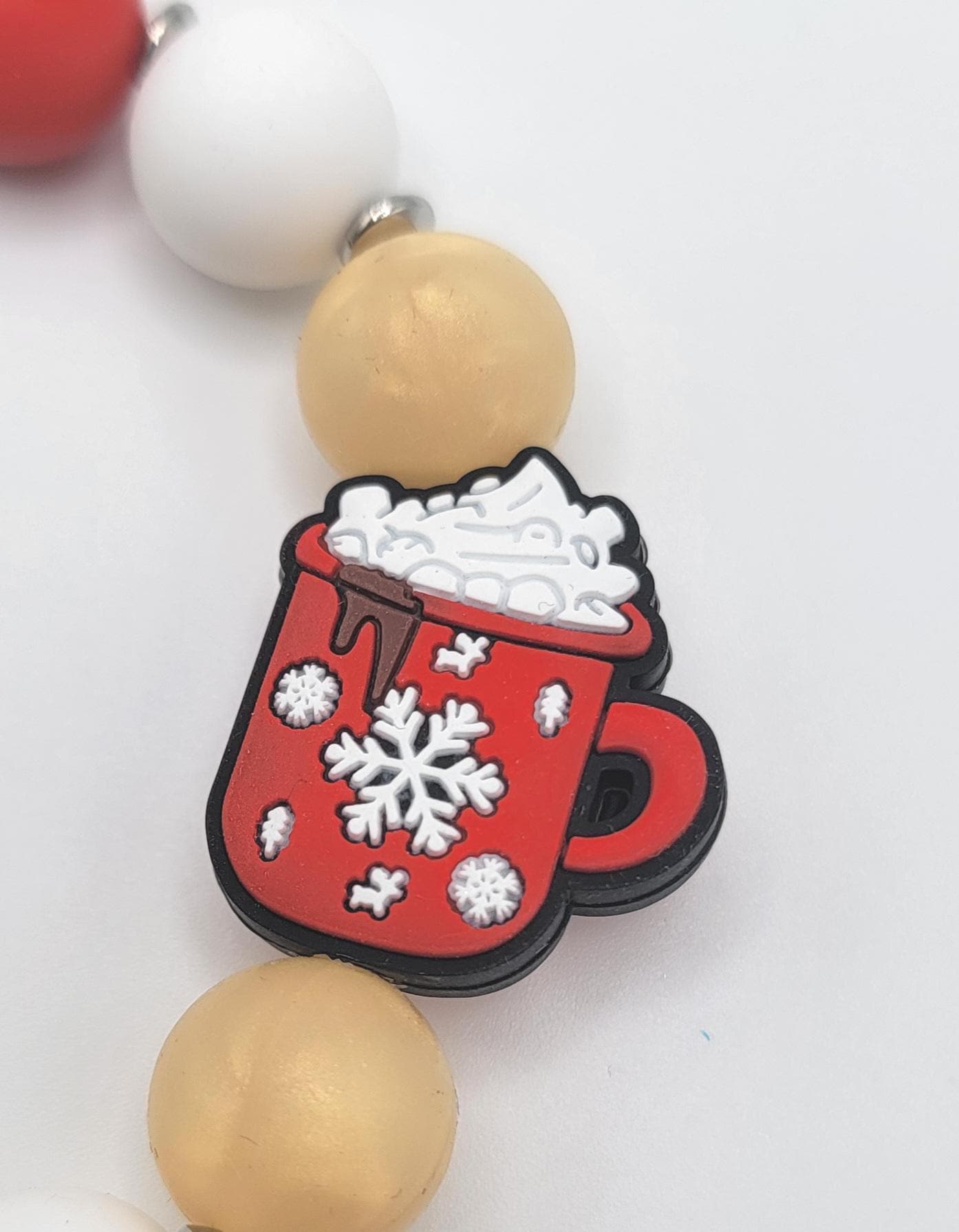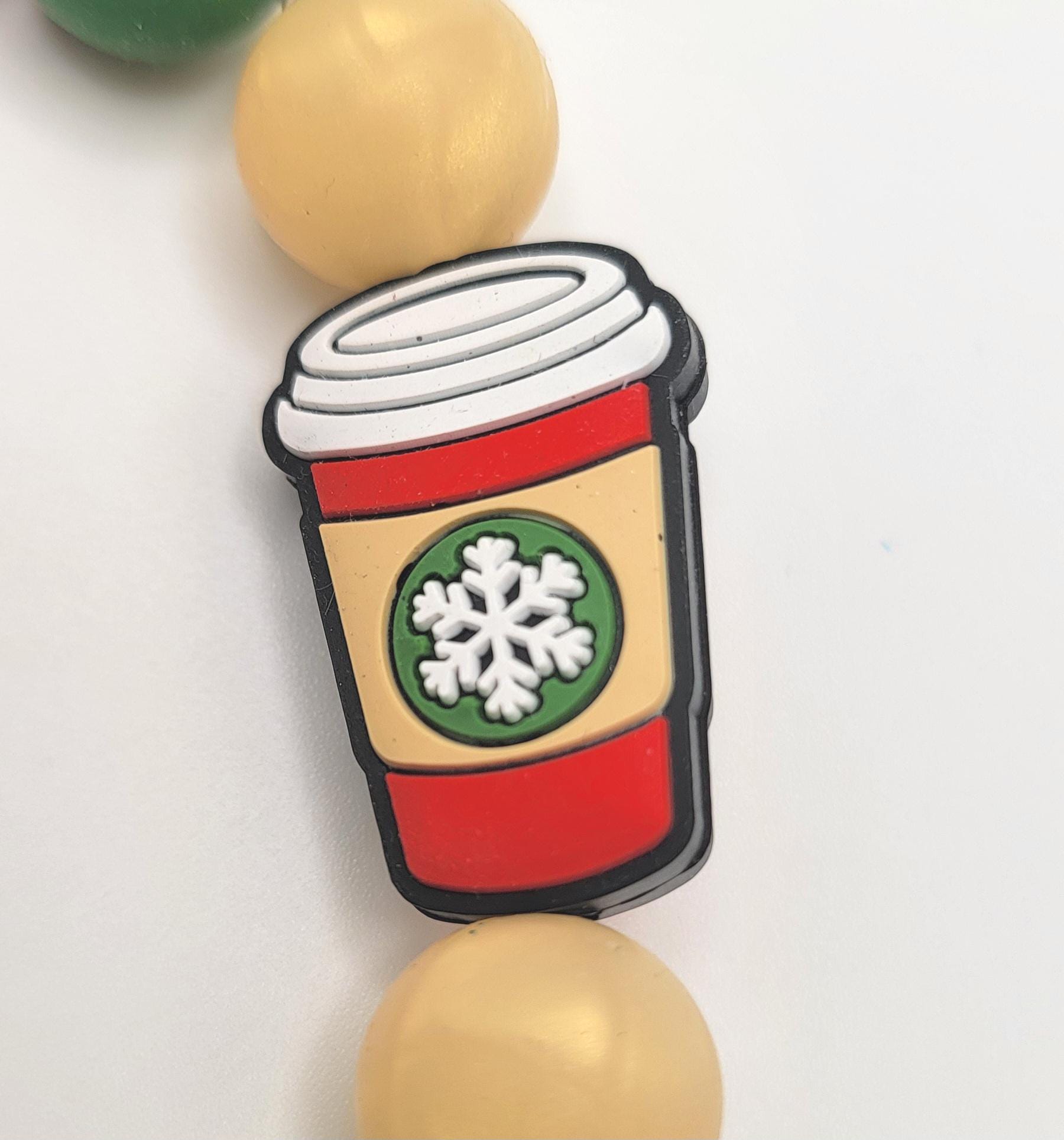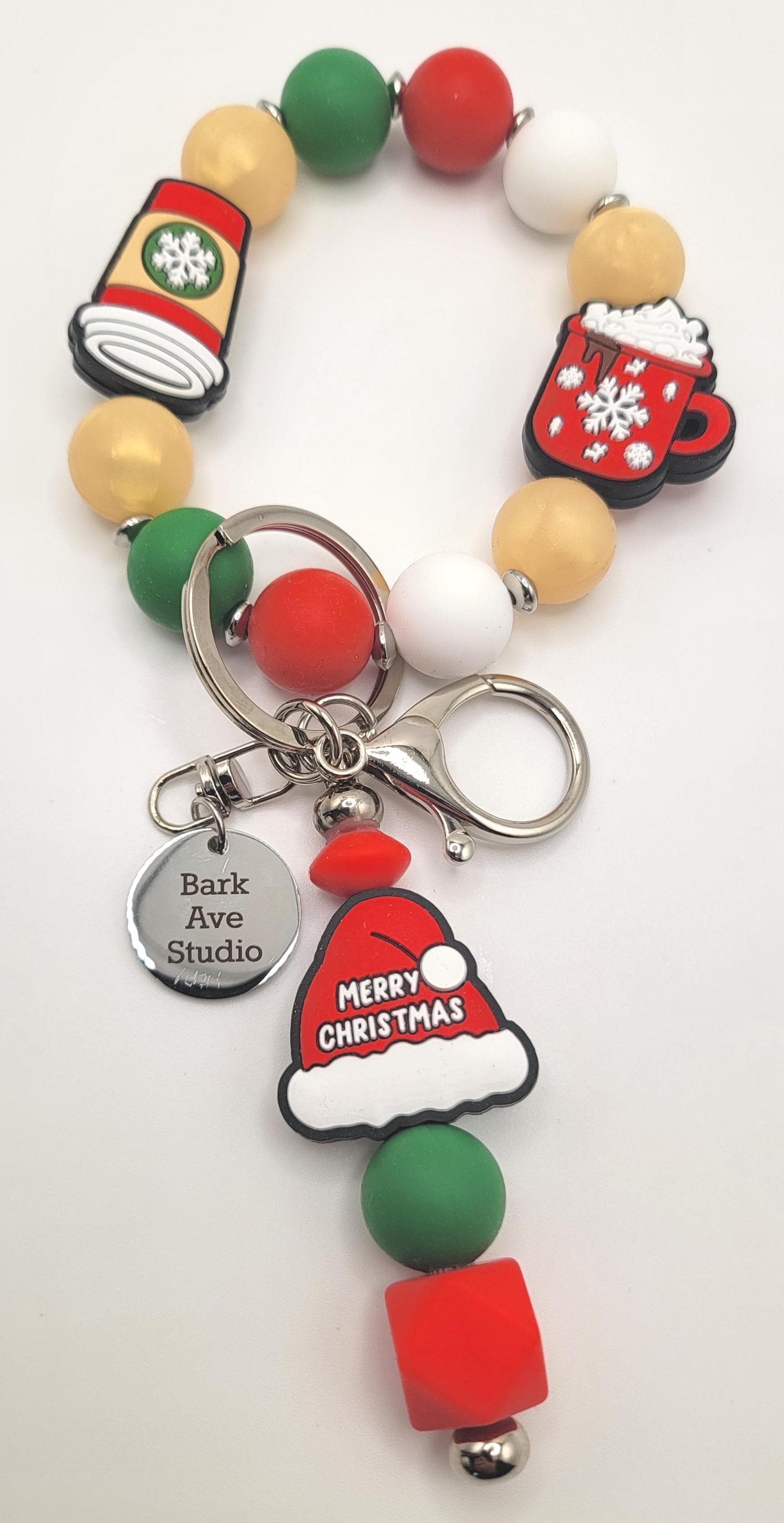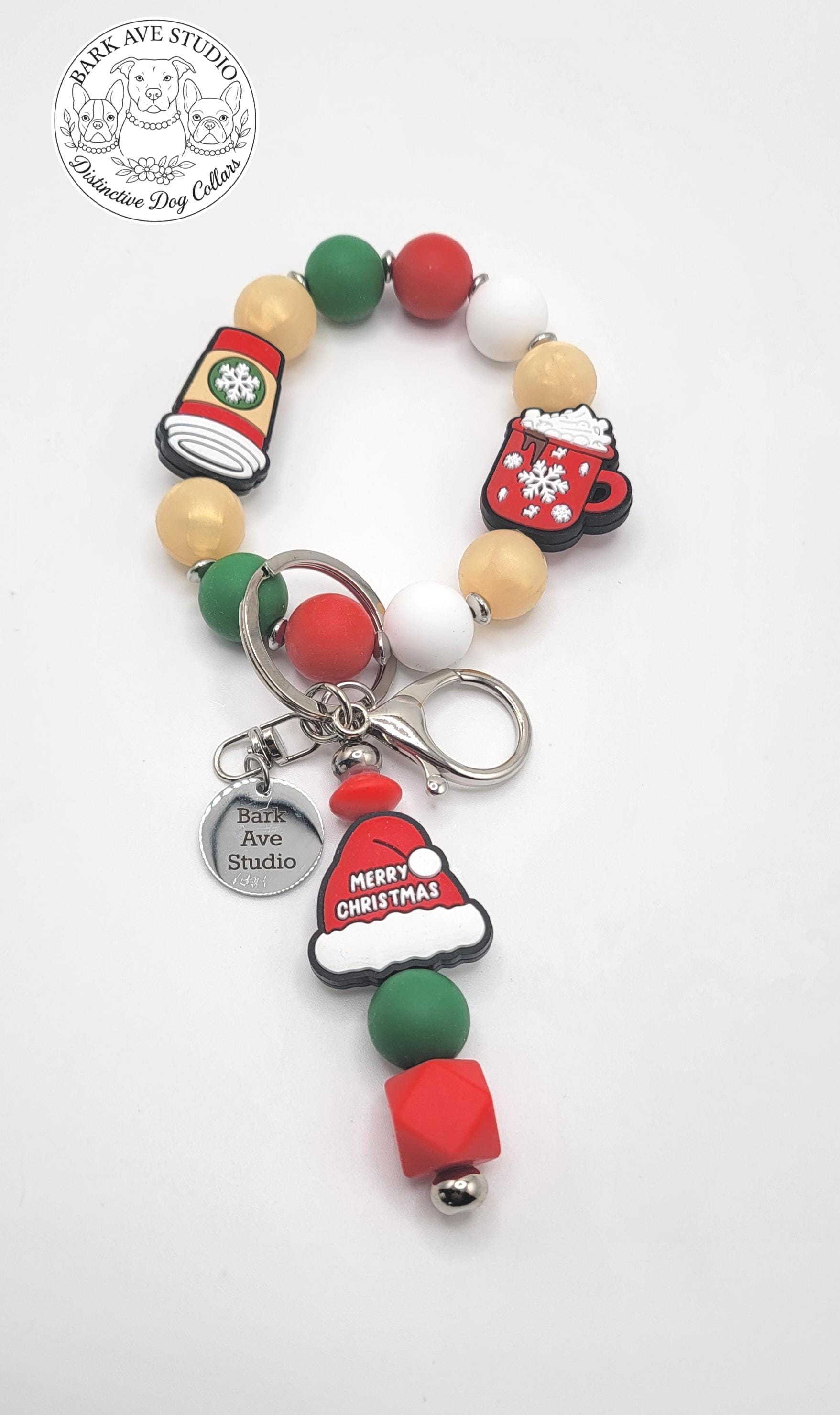Never dig through your bag for your keys again! Bring a little holiday cheer wherever you go with this festive merry Christmas Coffee & Cocoa Beaded Keychain! Handcrafted with bright red, green, white, and golden silicone beads, this cheerful accessory features adorable Christmas charms - a Santa hat, a red mug of cocoa, and a holiday coffee cup. Perfect for clipping to your purse, keys, or tote, it makes a joyful gift for coffee lovers and Christmas enthusiasts alike!