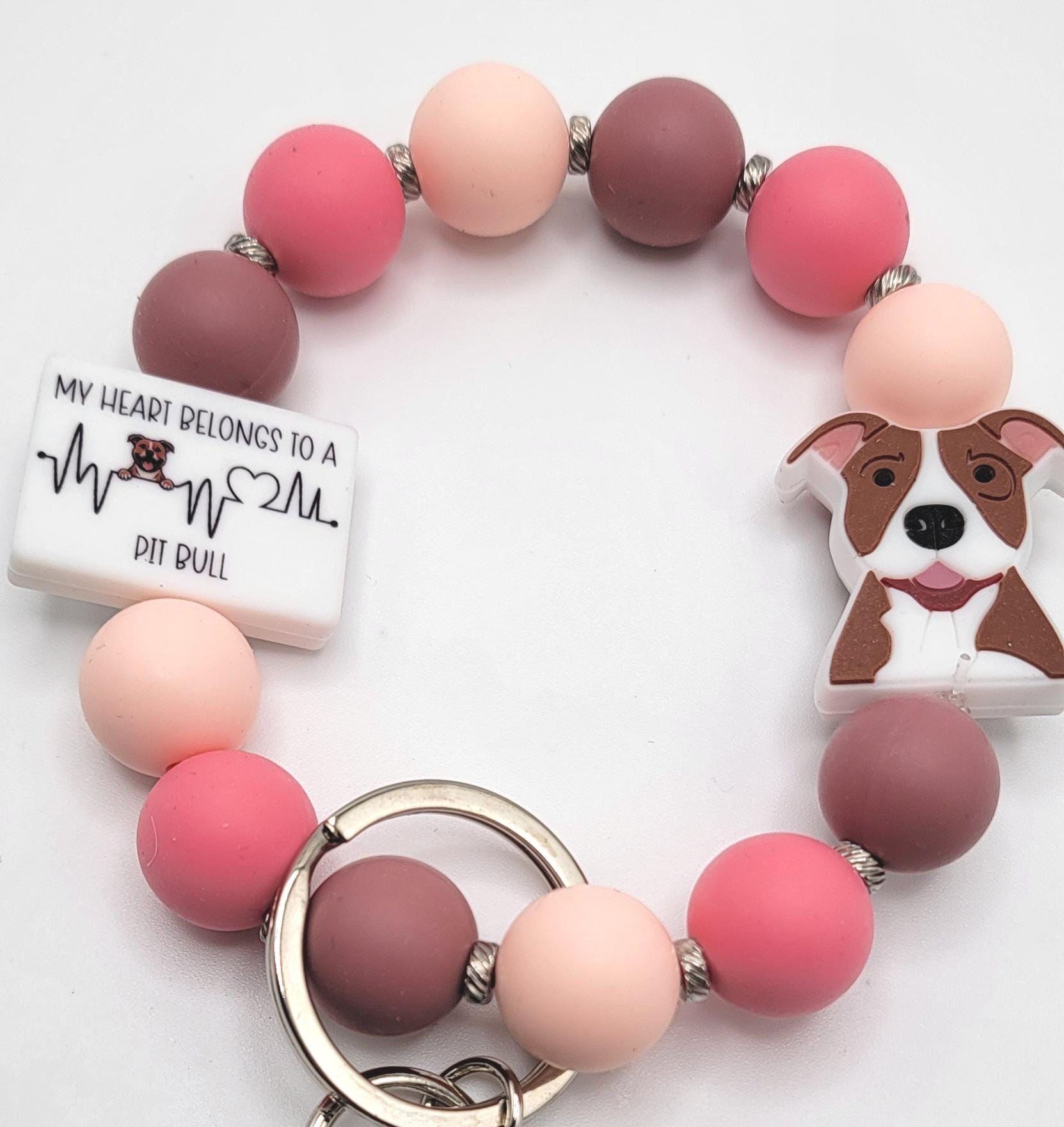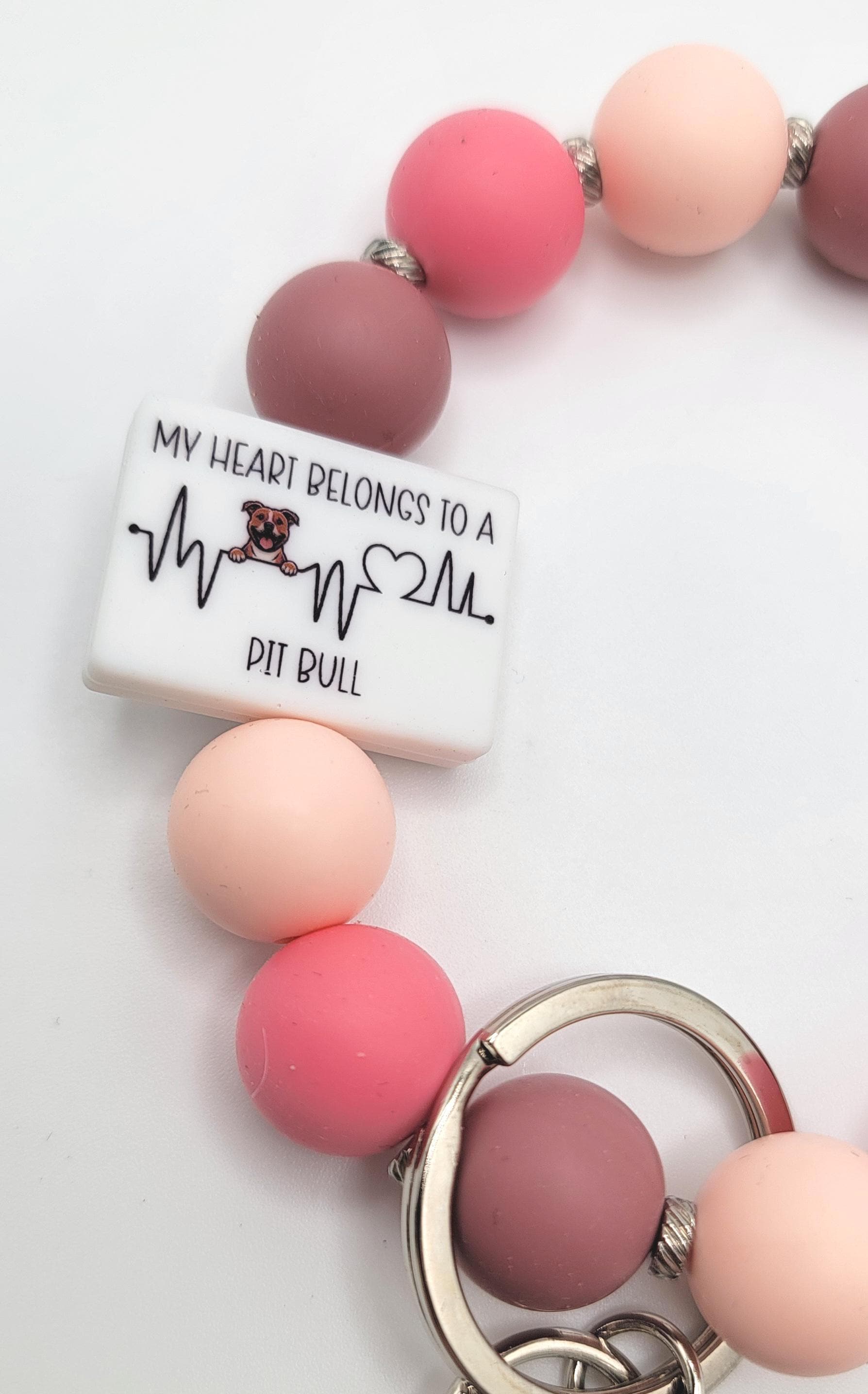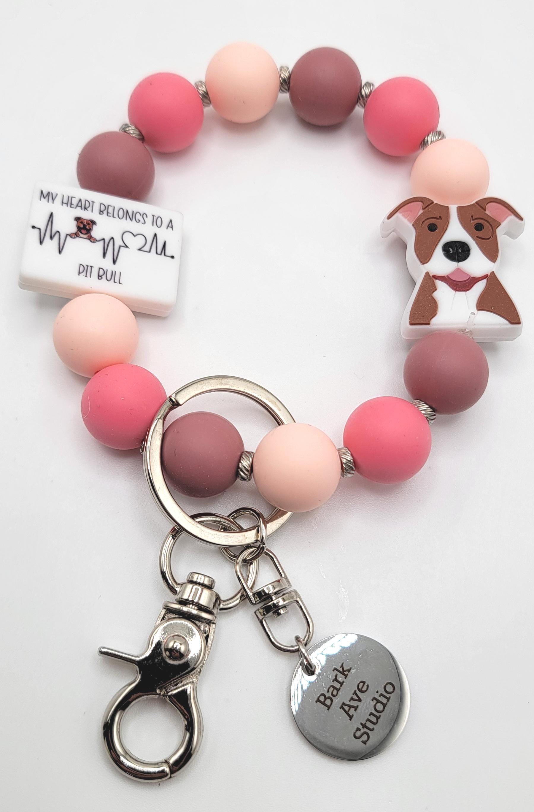 Never dig through your bag for your keys again! Show your pit bull pride with this adorable My Heart Belongs to a Pit Bull Beaded Keychain! Handcrafted with soft blush, mauve, and pink beads, this charming accessory features a sweet pit bull charm and a heart monitor block that reads "My Heart Belongs to a Pit Bull." Finished with sparkling stainless-steel spacers, it's the perfect mix of playful and meaningful. Clip it to your keys, purse, or backpack and carry your love for your pup wherever you go! Each piece is handmade with care by Bark Ave Studio - making it a thoughtful gift for pit bull moms, dog lovers, or rescue advocates. A unique handmade gift that celebrates love, loyalty, and the joy of dogs!