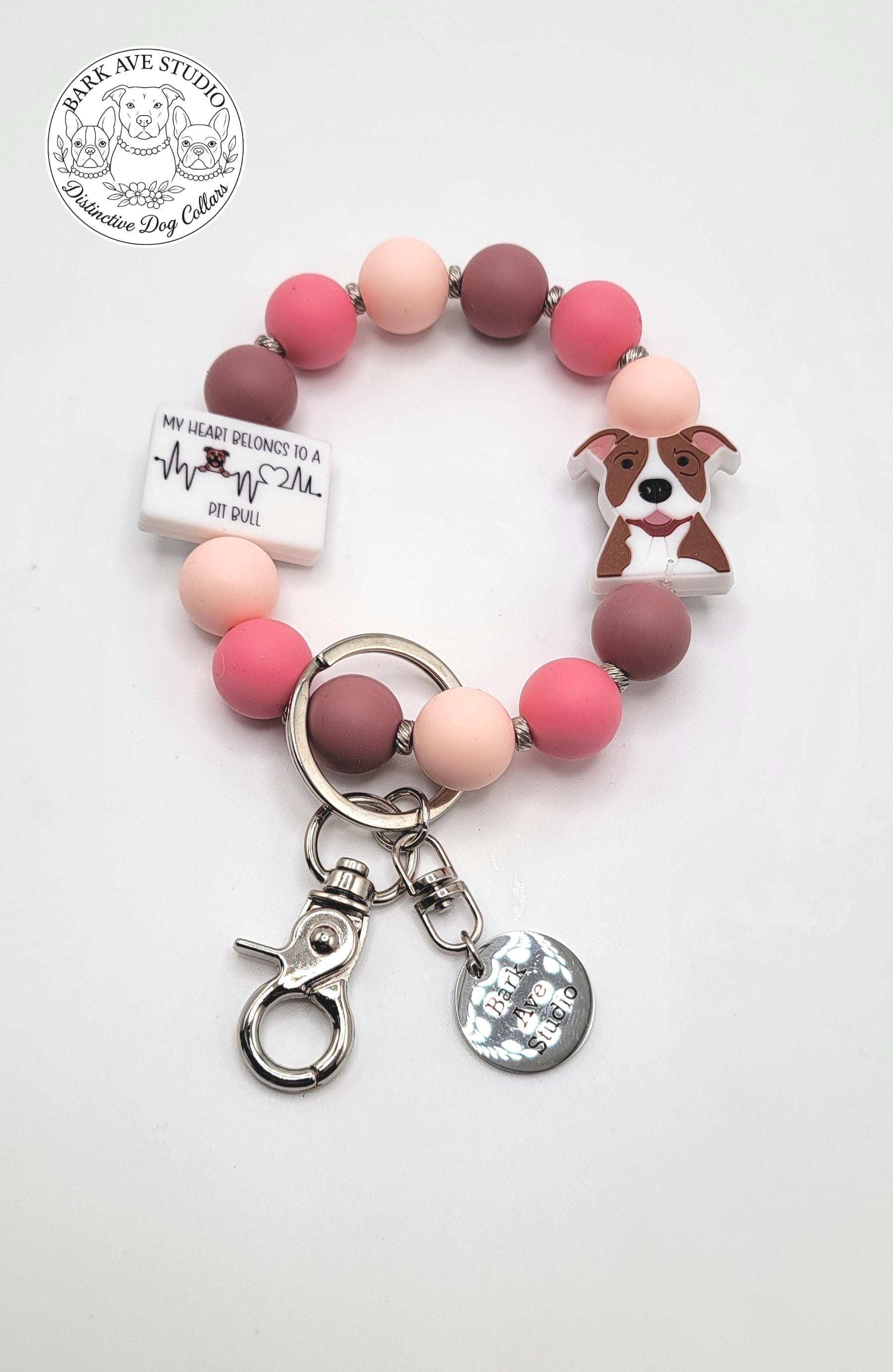 Never dig through your bag for your keys again! Show your pit bull pride with this adorable My Heart Belongs to a Pit Bull Beaded Keychain! Handcrafted with soft blush, mauve, and pink beads, this charming accessory features a sweet pit bull charm and a heart monitor block that reads "My Heart Belongs to a Pit Bull." Finished with sparkling stainless-steel spacers, it's the perfect mix of playful and meaningful. Clip it to your keys, purse, or backpack and carry your love for your pup wherever you go! Each piece is handmade with care by Bark Ave Studio - making it a thoughtful gift for pit bull moms, dog lovers, or rescue advocates. A unique handmade gift that celebrates love, loyalty, and the joy of dogs!