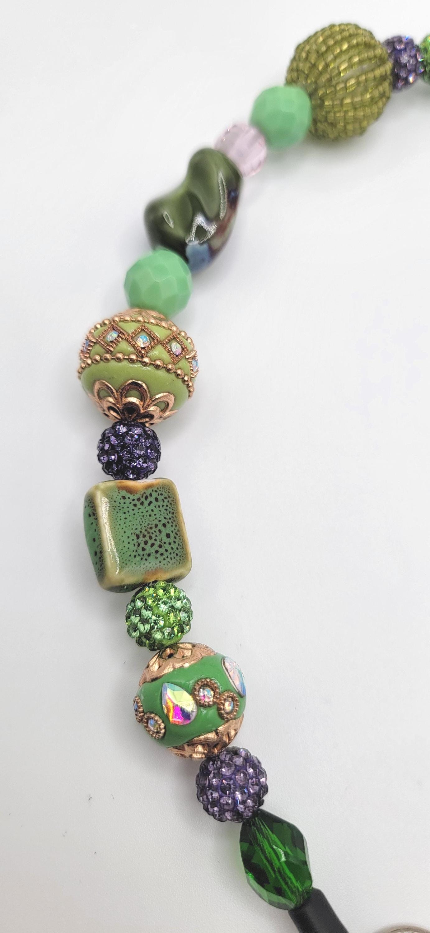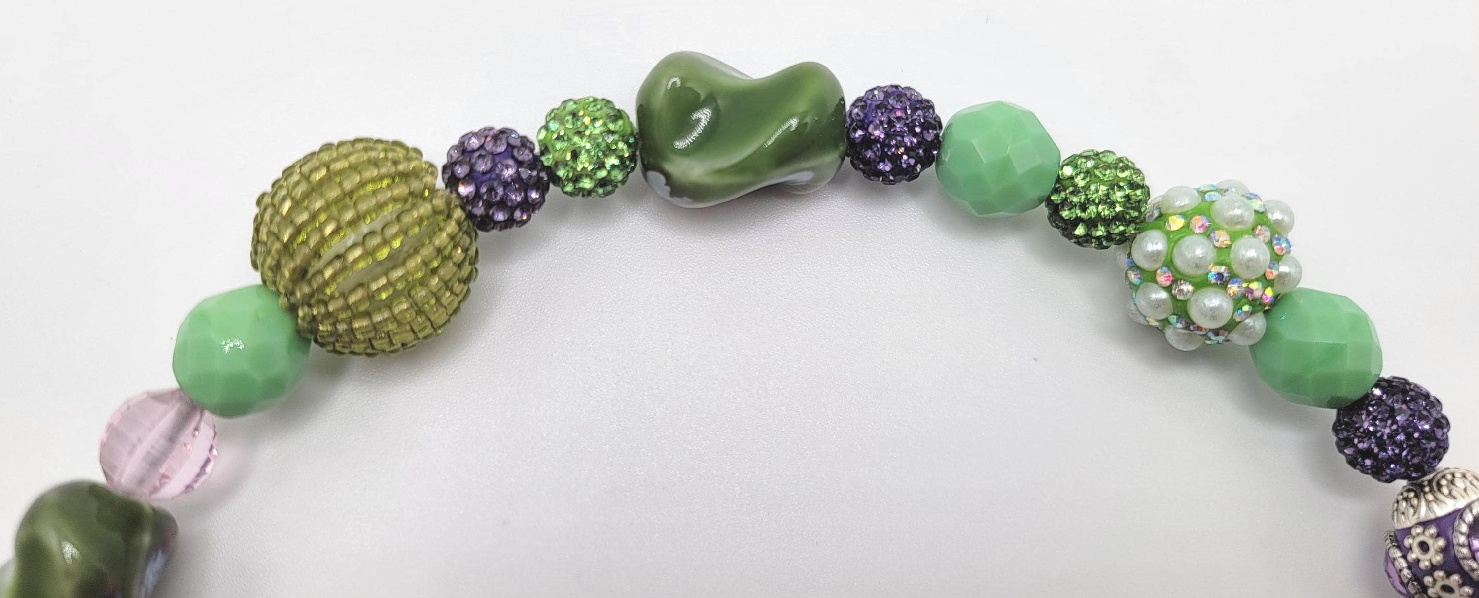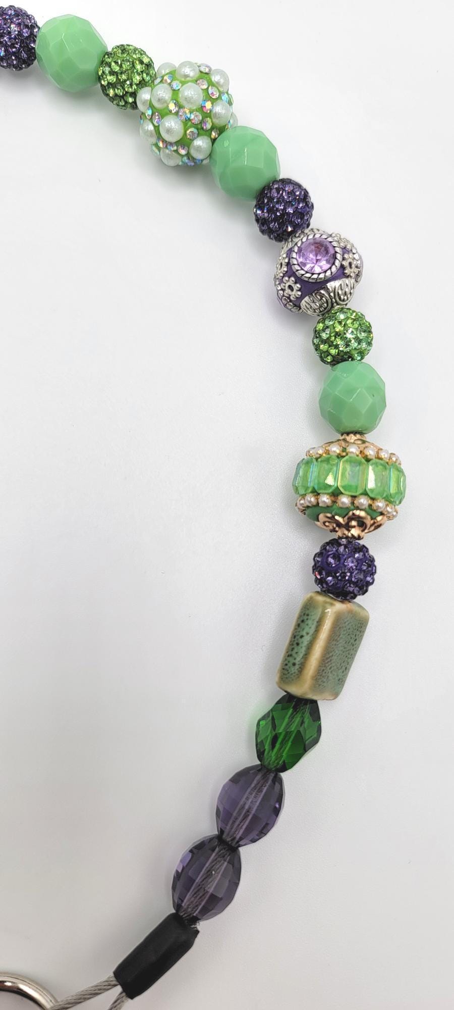 Celebrate your pup’s vibrant spirit with this one-of-a-kind Mardi Gras-inspired dog collar from Bark Ave Studio! Featuring hand-selected beads in shimmering shades of green, purple, and gold, this distinctive dog necklace adds a festive, playful touch to your dog’s style. Every bead is carefully chosen for maximum sparkle and character, including floral ceramics, glitter rounds, rhinestone-studded gems, and bright neon accents.